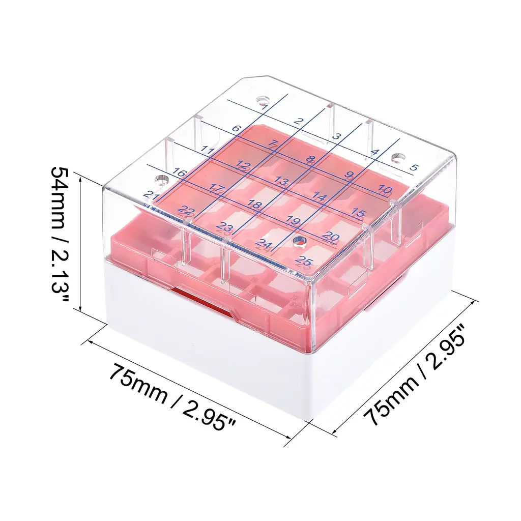 Freezer Tube Box 25 Places Rack For 1.8/2ml Microcentrifuge Tubes, Red - Red