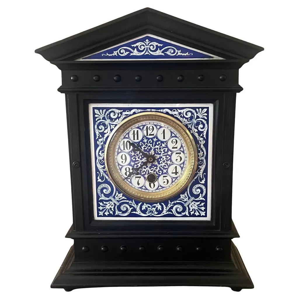 French Silver Gilt And Grey/blue Guilloche Enamel Box With 8-Day Clock To Lid