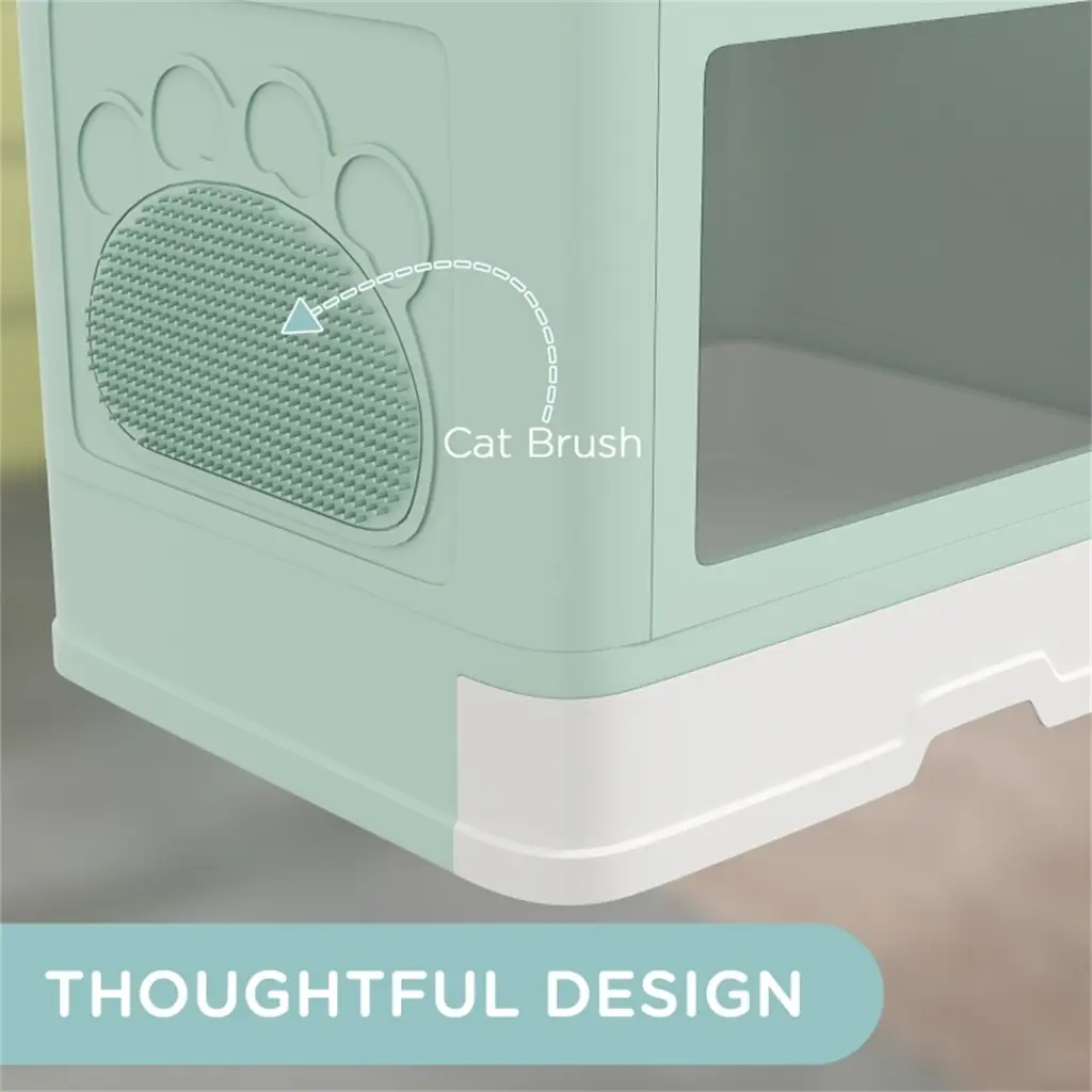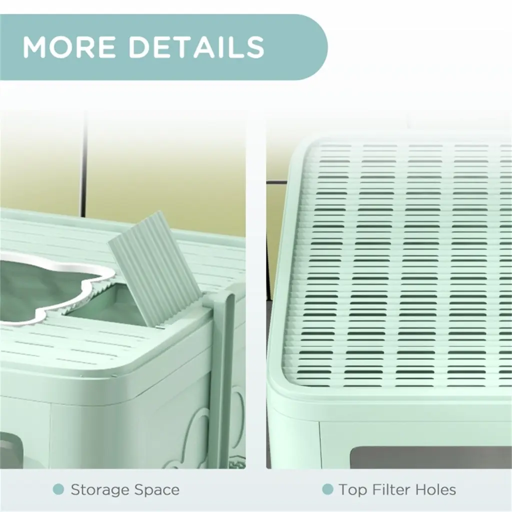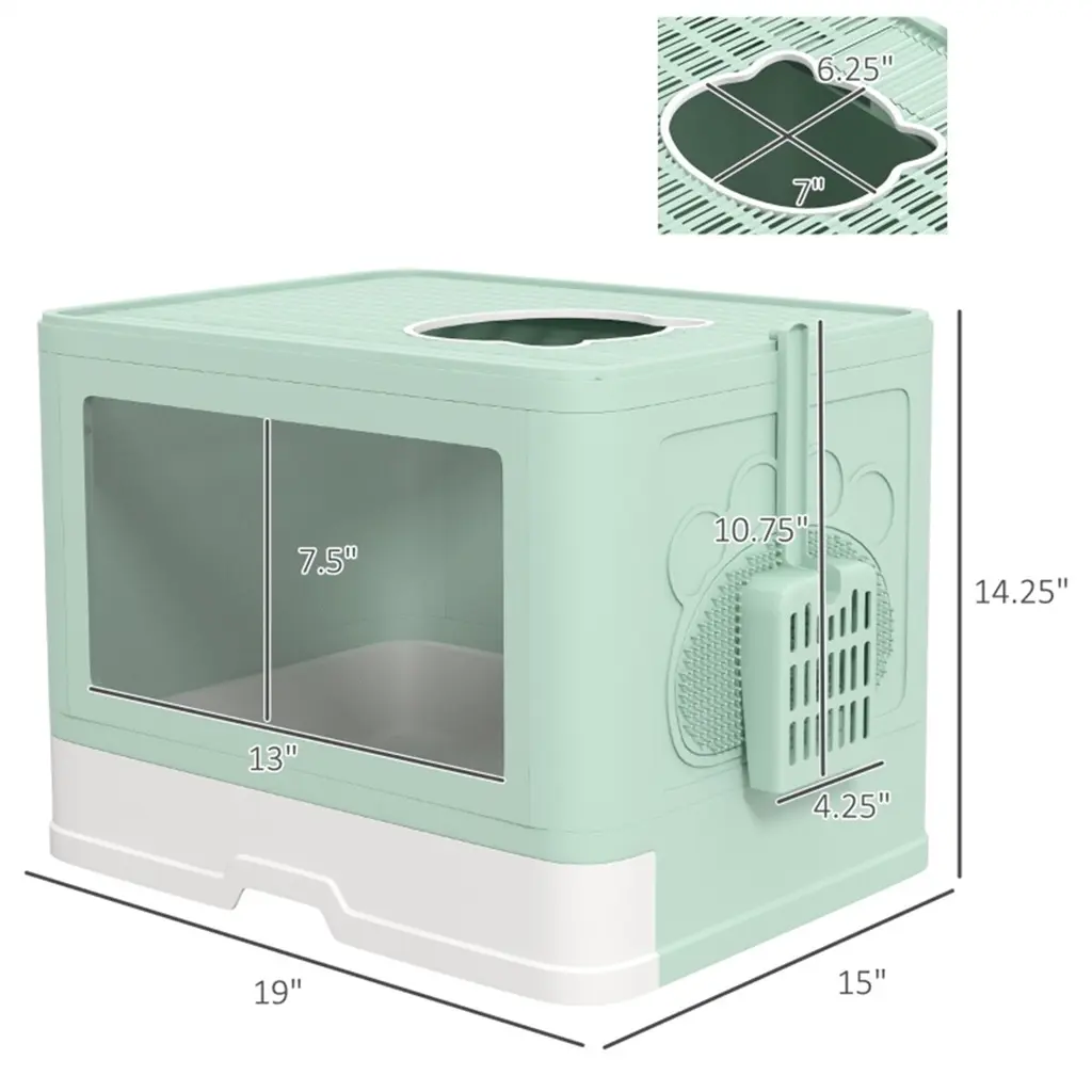 Fully Enclosed Cat Litter Box - 19" L X 15" W X 14.25" H - Green-White