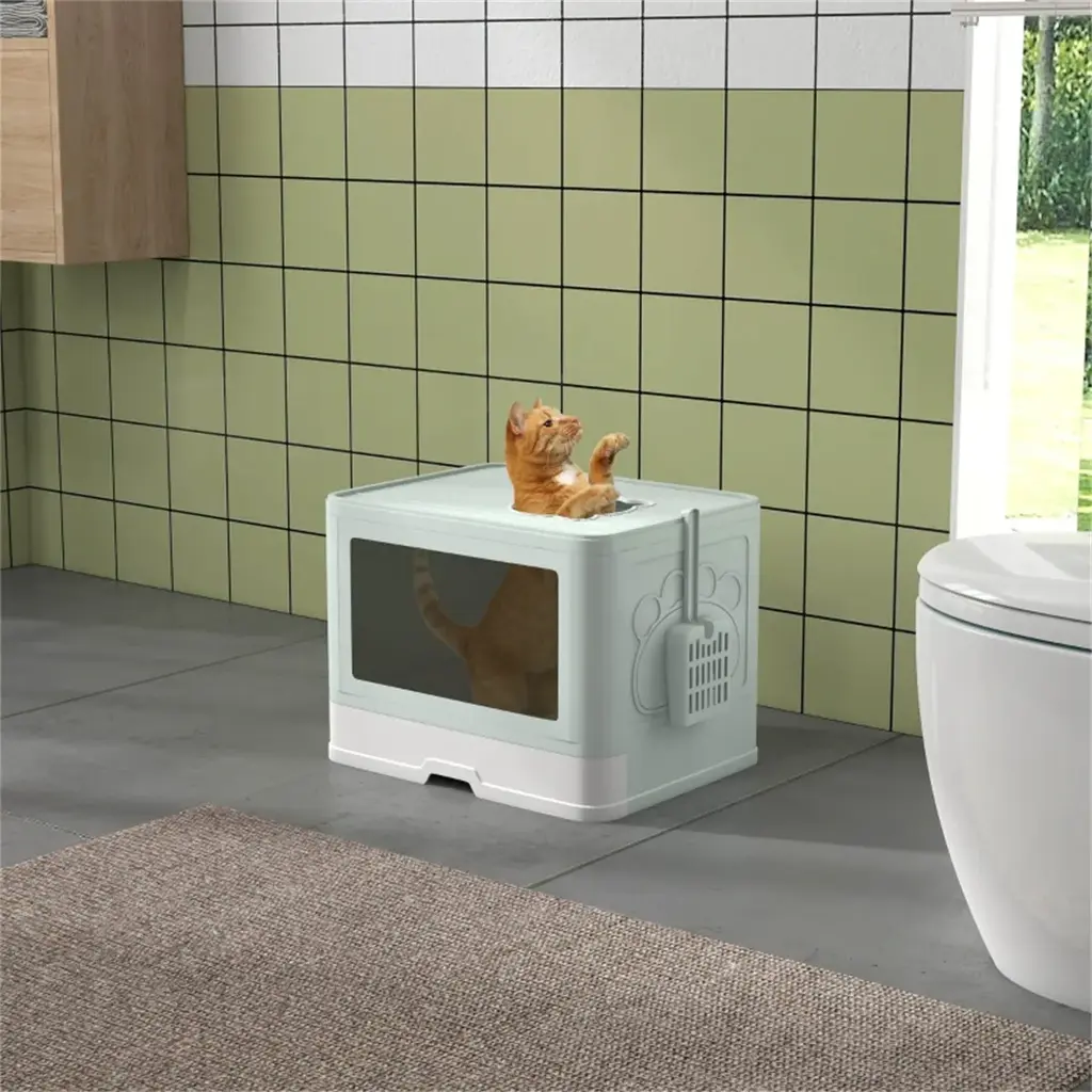 Specification: Key Features: Description: This fully enclosed cat litter box offers a functional and compact design ideal for small spaces. With dimensions of 19" x 15" x 14.25", it features a front entrance and top exit to provide easy access for cats while reducing litter scatter through a perforated top. The pull-out tray and included scoop simplify cleaning, while the built-in storage space keeps litter supplies organized. Designed for cats up to 9 lbs., it comes with a handy cat brush for grooming and disassembles easily for convenient storage. Perfect for maintaining a tidy and pet-friendly environment.