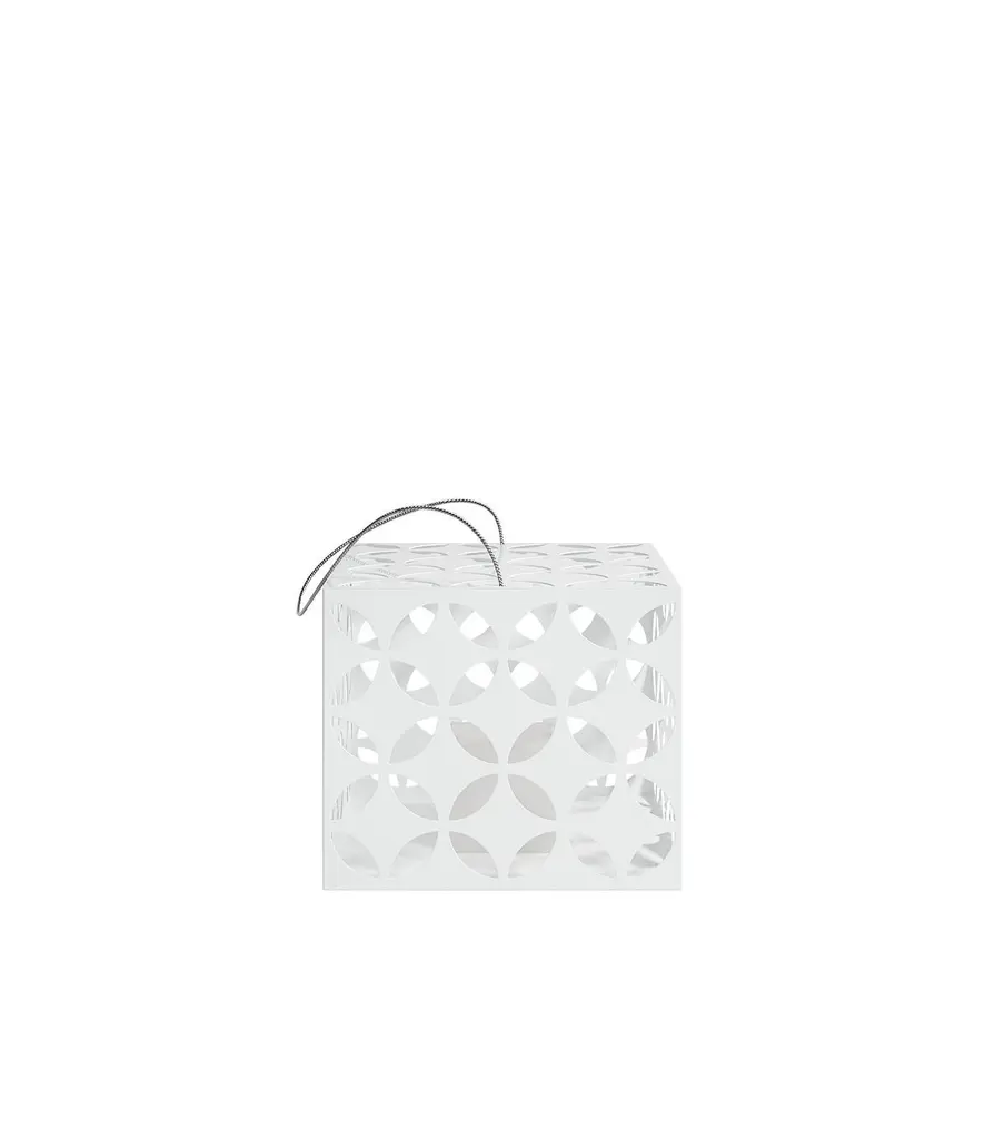 This piece, with its standard volume and geometric, universal and contemporary language, has a unity of criteria. The Farol Touareg subtly filters the light, just as the lattices that are so present in our Mediterranean culture.” - Sandra Figuerola (Designer) -Thermo-laquered aluminum. Candle included (6" x 6" x6" H).