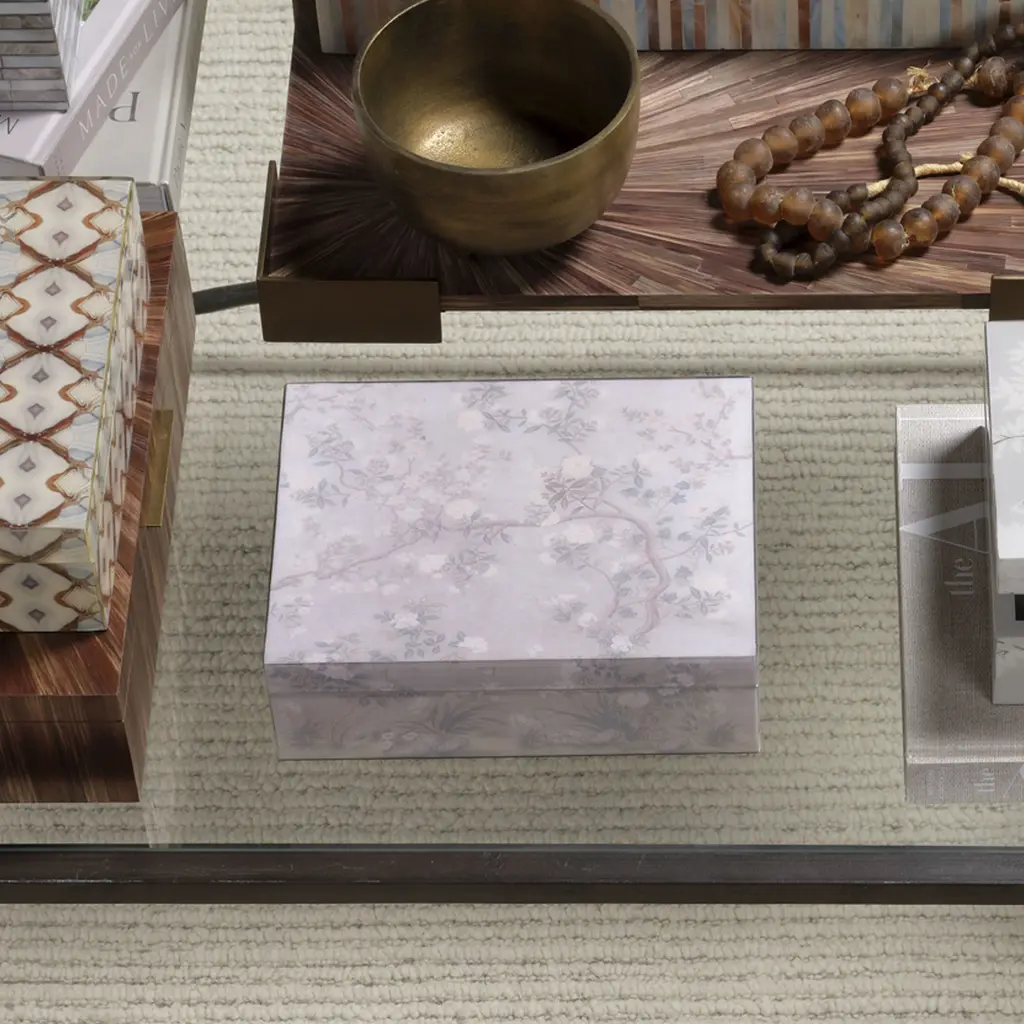 Timeless beauty of these small boxes channels the peace and perfection of branches in full bloom. A new way to add a touch of color to an otherwise neutral decor, the handcrafted pieces are certain to become treasured family heirlooms.