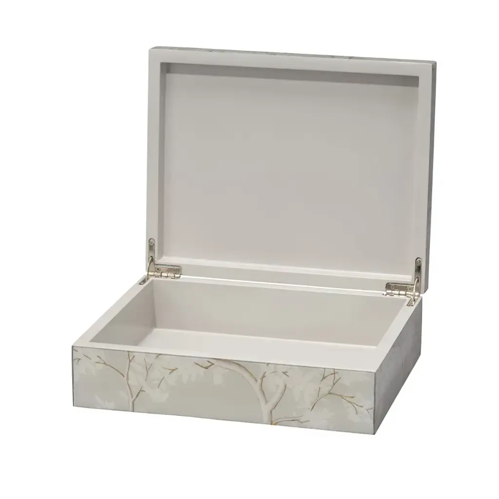 Timeless beauty of these small boxes channels the peace and perfection of branches in full bloom. A new way to add a touch of color to an otherwise neutral décor, the handcrafted pieces are certain to become treasured family heirlooms.