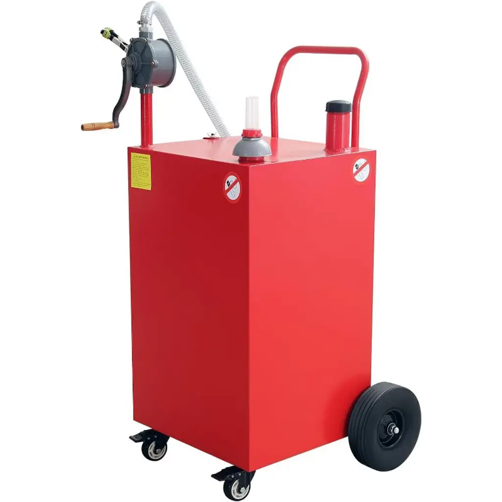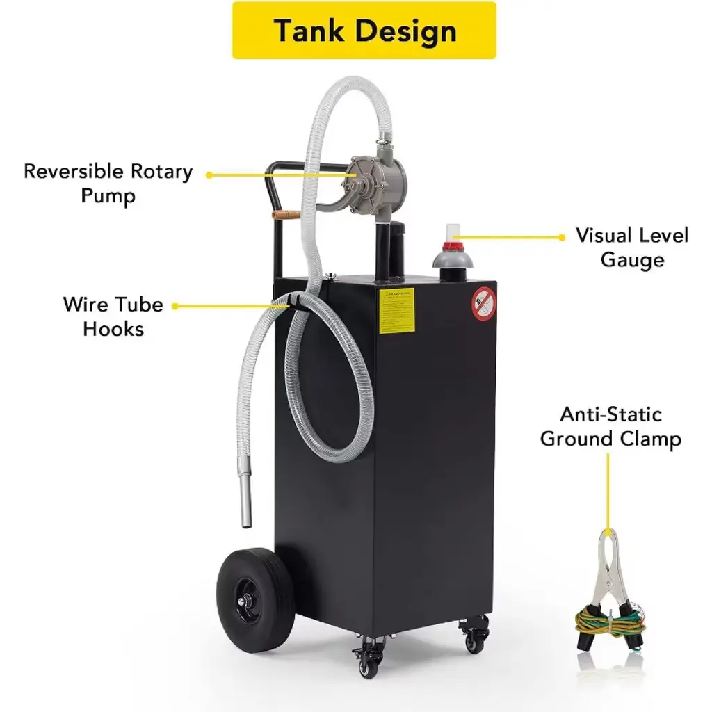 Gas Caddy W/wheels & 11.9ft Hose, Fuel Transfer Storage Can Reversible Rotary Hand Siphon Pump, For Atv Car Mowers Tractor Boat Motorcycle