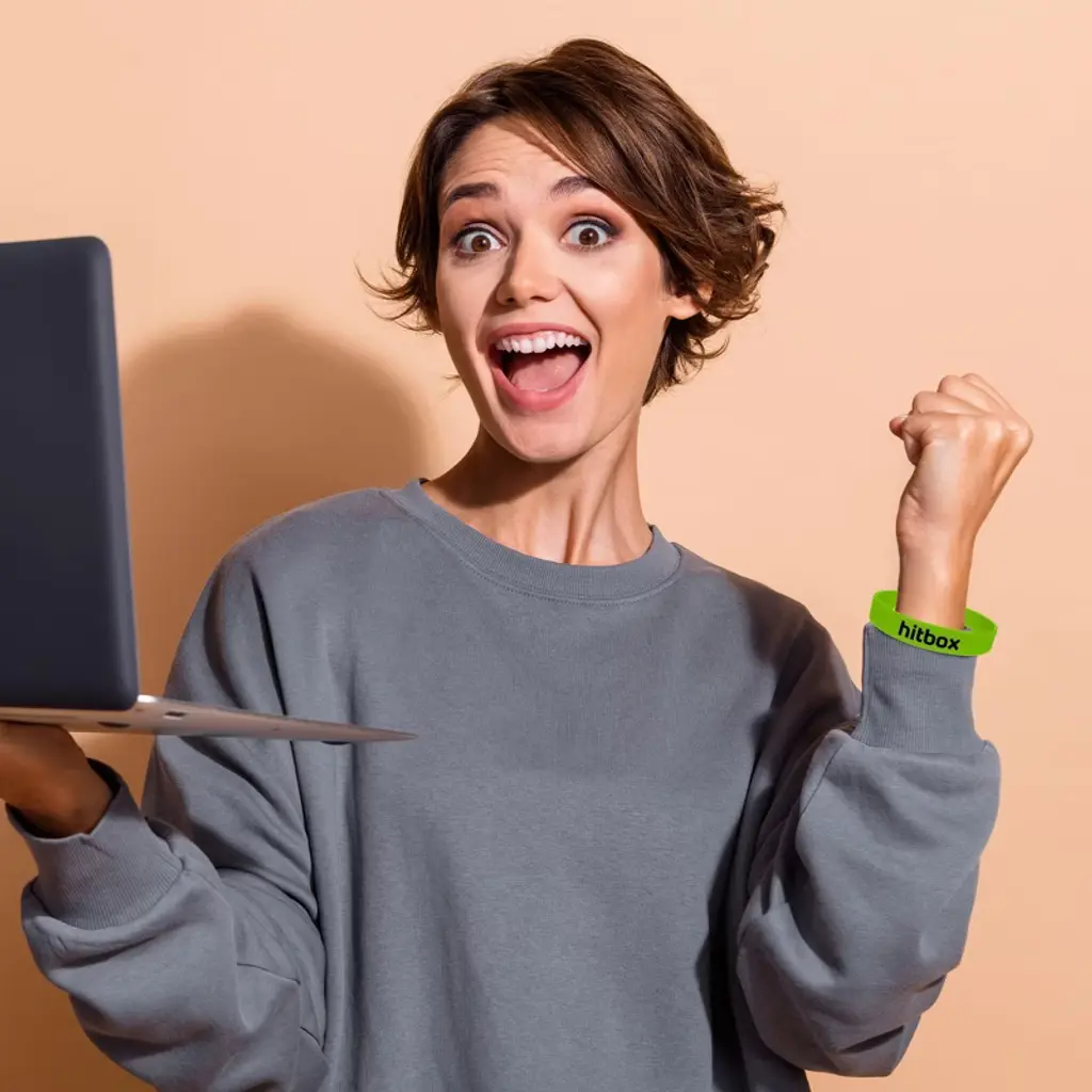Wear your love of the online video game community, Hitbox, with this stylish logo wristband that comes in a vibrant lime green color and displays the Hitbox logo in black lettering. It’s a nice collectible item to keep for yourself, and it's surely a great gift for any gaming fan!