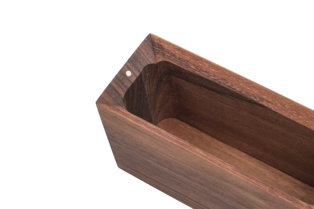 At first glance a solid block of wood with no apparent means of entry, the Gemma Box is in fact a delightful three-dimensional trompe l’oeil. The lid is perfectly integrated, with no hinges or visible joins, and held in place with magnets. The Gemma Box is the perfect vessel in which to store your treasured possessions and keepsakes.