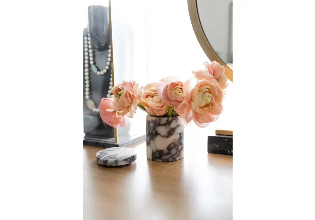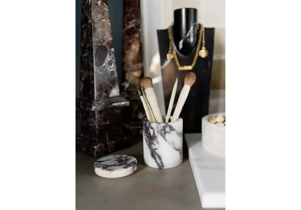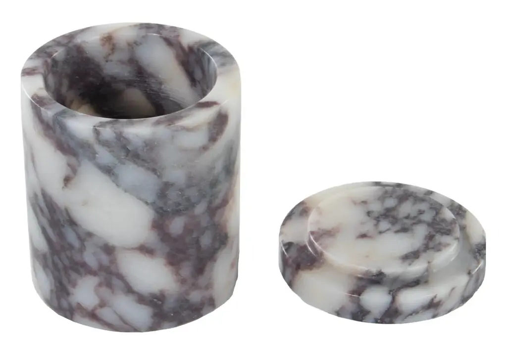 The Gemma is a chic, sophisticated addition with its petite size carved from the finest slab of Calacatta Viola marble. Its rich, visually textured design features natural veining and patterning for an entirely unique look. Style anywhere from a bathroom to bedroom or office to living room for a luxurious, elevated touch.