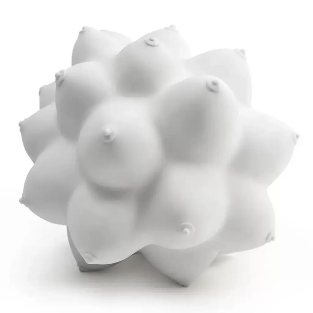 Provocative Porcelain. An artful cluster of idealized form topped with a removable lid. Stash your secrets in a chic celebration of provocation. Inspired by American artist Georgia O'Keeffe, wife and muse of art dealer and renowned photographer Alfred Stieglitz. Jonathan sculpts and throws the models for our Muse pottery and then substitutes our signature geometric relief patterns with body parts—faces, breasts, lips—to create a surreal style. Pieces are inspired by our favorite artists' muses. *There is no affiliation, association, authorization, endorsement or sponsorship between Georgia O'Keeffe or the Georgia O'Keeffe Museum and Jonathan Adler or the products herein. Our reference to Georgia O'Keeffe in no way indicates any relationship or affiliation to Georgia O'Keeffe or the Georgia O'Keeffe Museum, nor does it signify that the Georgia O'Keeffe Museum has licensed, is the source of, endorsed or approves of the content of this site.