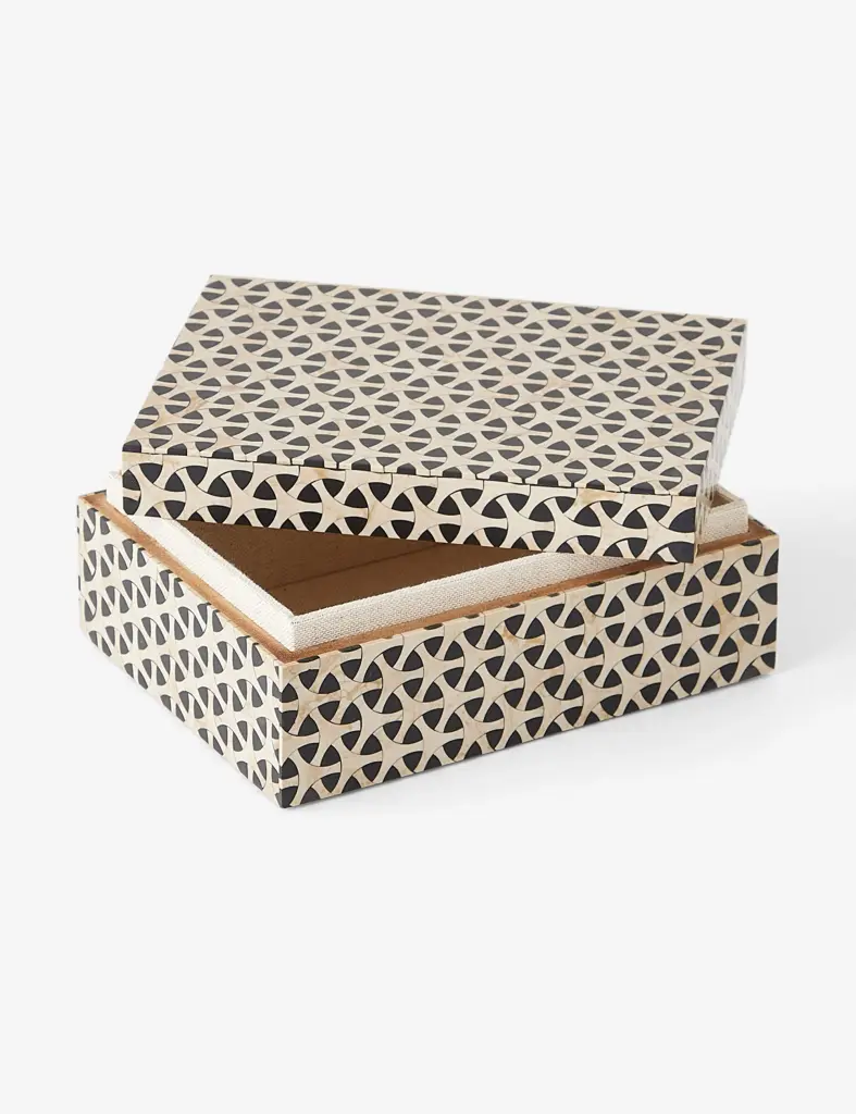 The Gerzon box brings a chic edge to functional decor. This resin piece is handcrafted with a geometric design for a pop of visual interest in any tabletop curation—style in your home workspace or on a counter or dresser to keep things stylish and tidy.