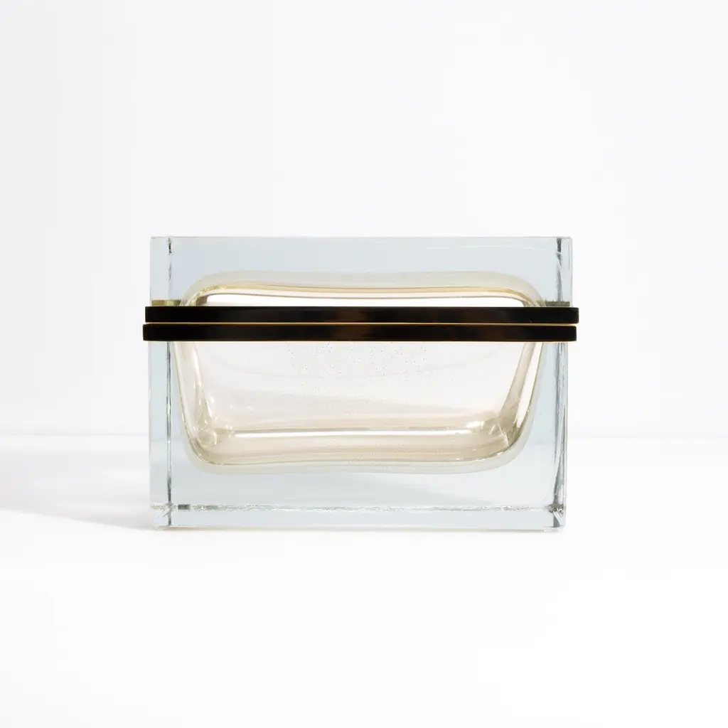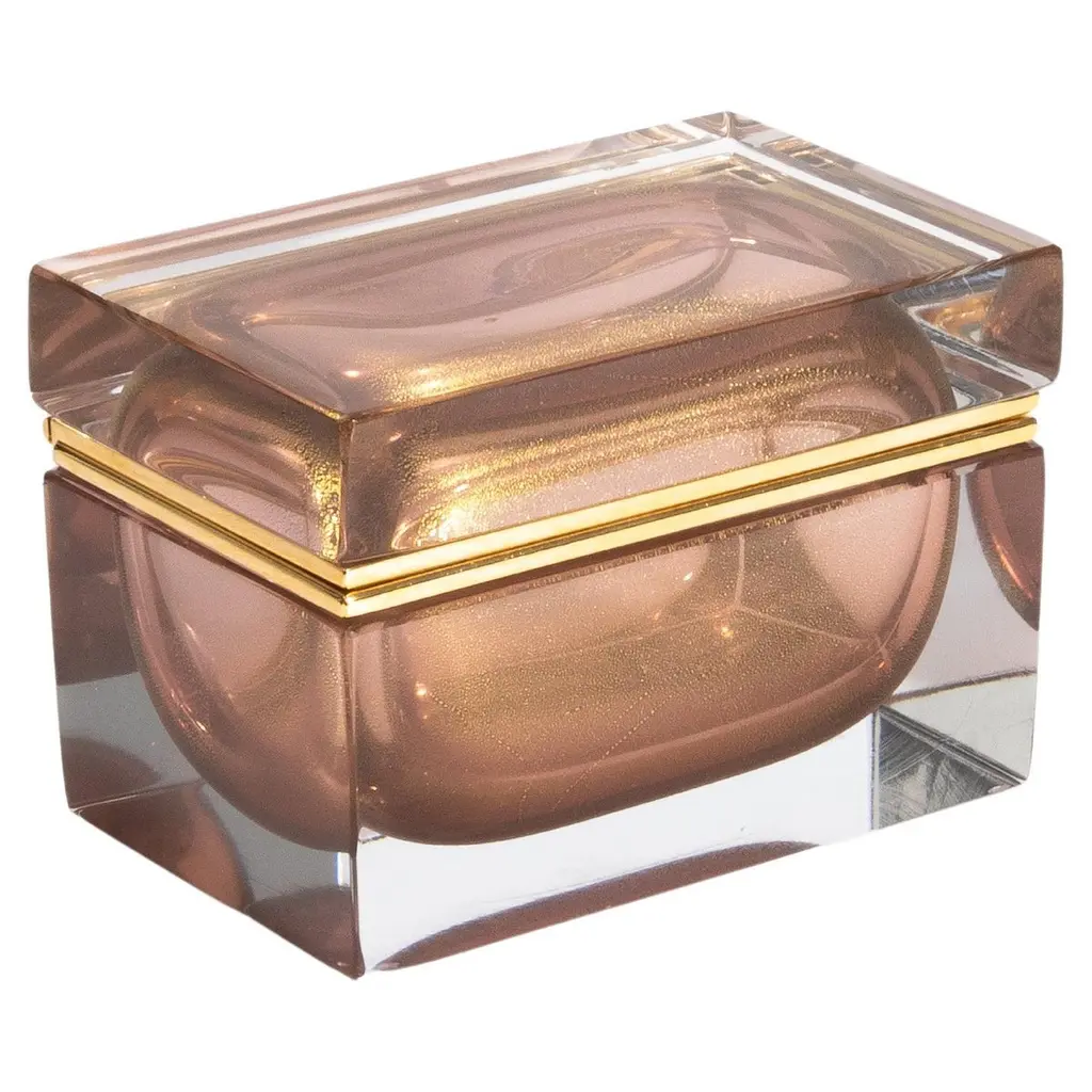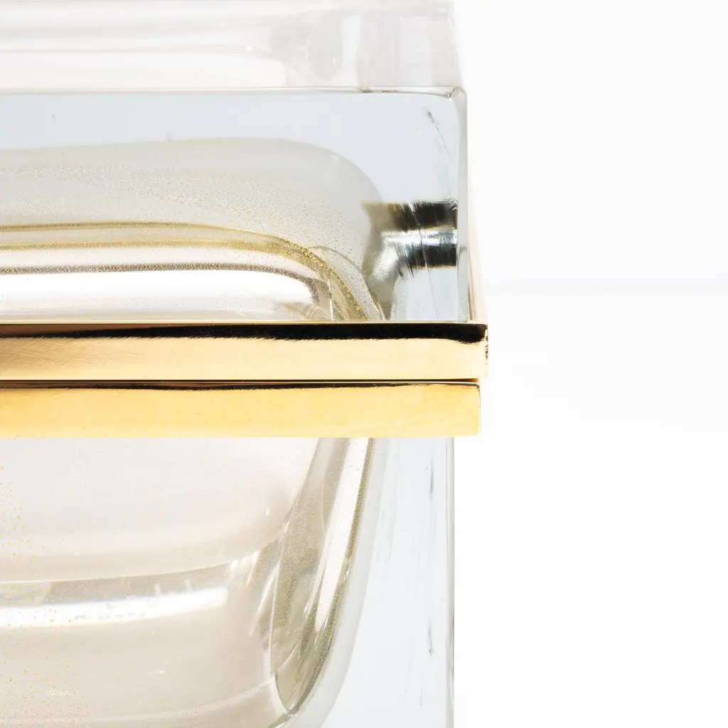 Giant Hand Blown Murano Glass Box In Crystal With 24-Karat Gold Flecks