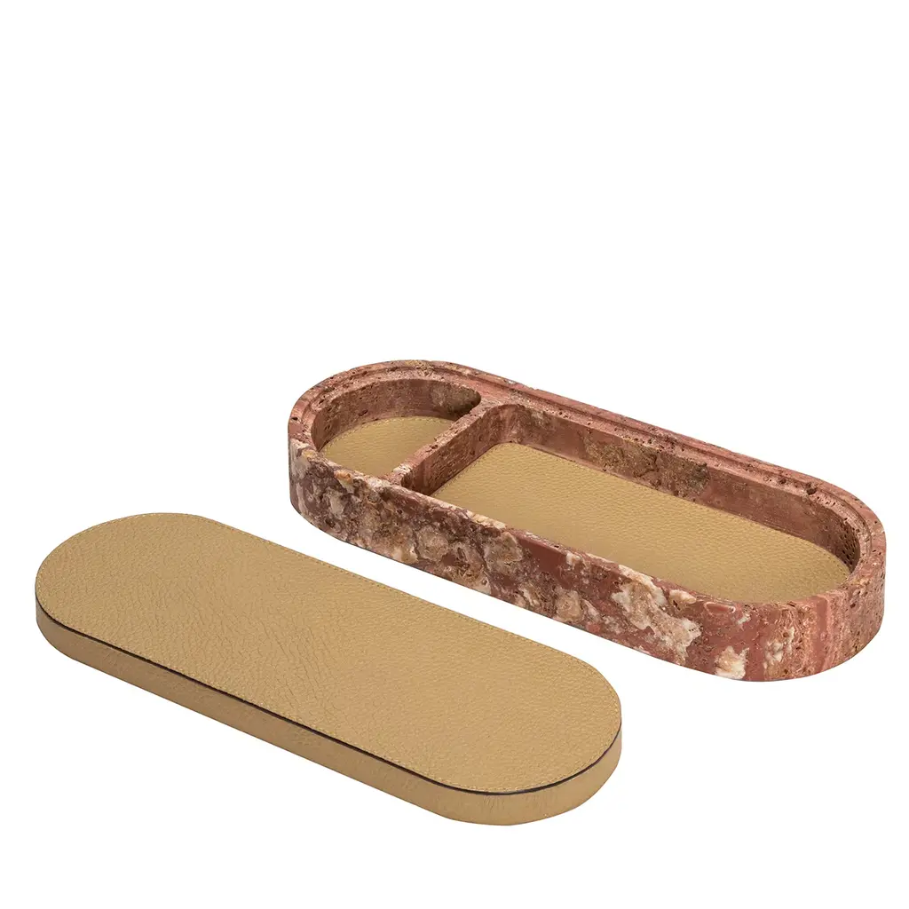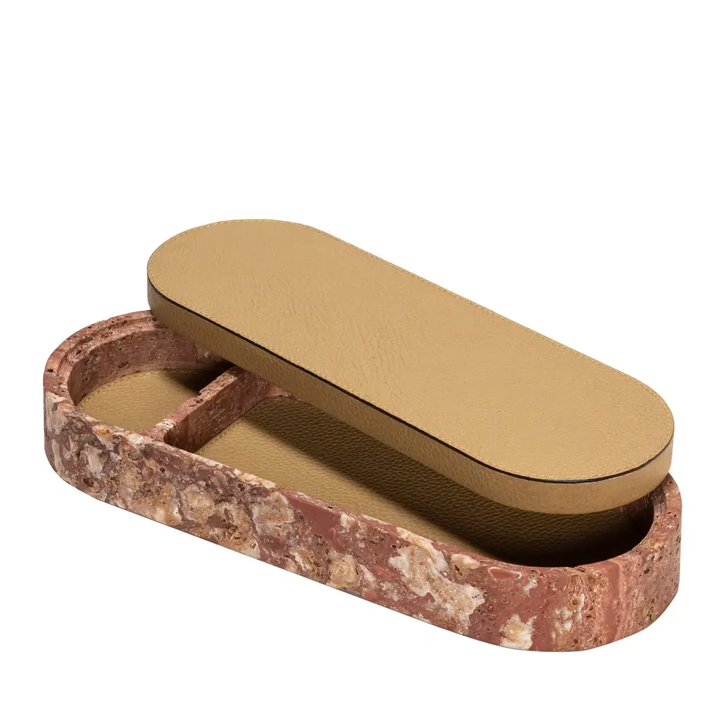Featuring minimal geometric shapes, these boxes combine the beauty of travertine in several nuances of choice with the finest Italian leather. Custom sizes available on request. Travertino finishes available: classic / walnut / silver / yellow / red.