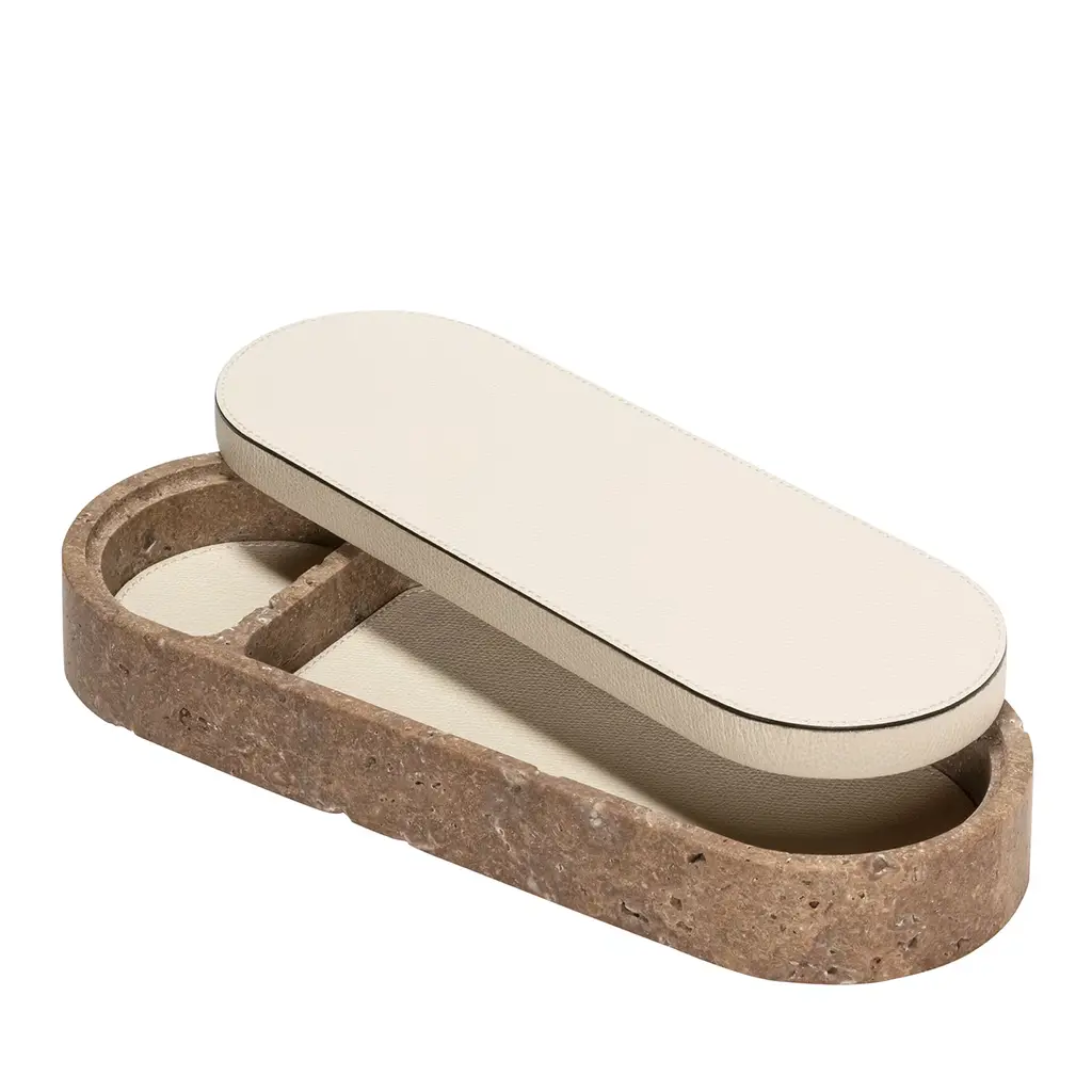 Featuring minimal geometric shapes, these boxes combine the beauty of travertine in several nuances of choice with the finest Italian leather. Custom sizes available on request. Travertino finishes available: classic / walnut / silver / yellow / red.