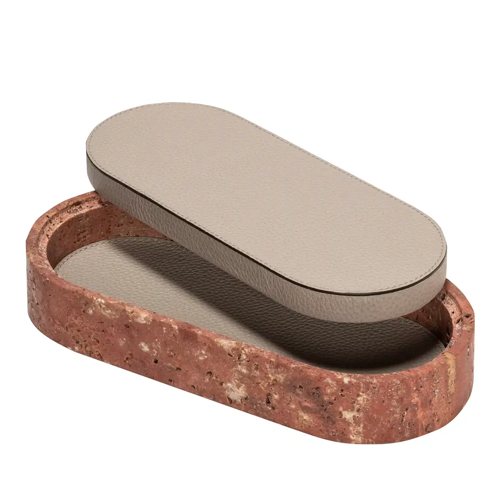 Featuring minimal geometric shapes, these boxes combine the beauty of travertine in several nuances of choice with the finest Italian leather. Custom sizes available on request. Travertino finishes available: classic / walnut / silver / yellow / red.
