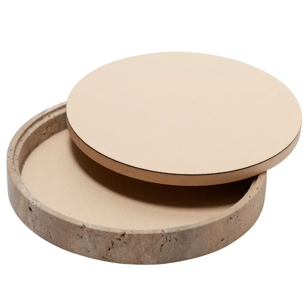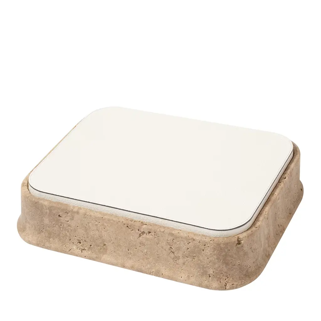 Featuring minimal geometric shapes, these boxes combine the beauty of travertine in several nuances of choice with the finest Italian leather. Custom sizes are available on request.