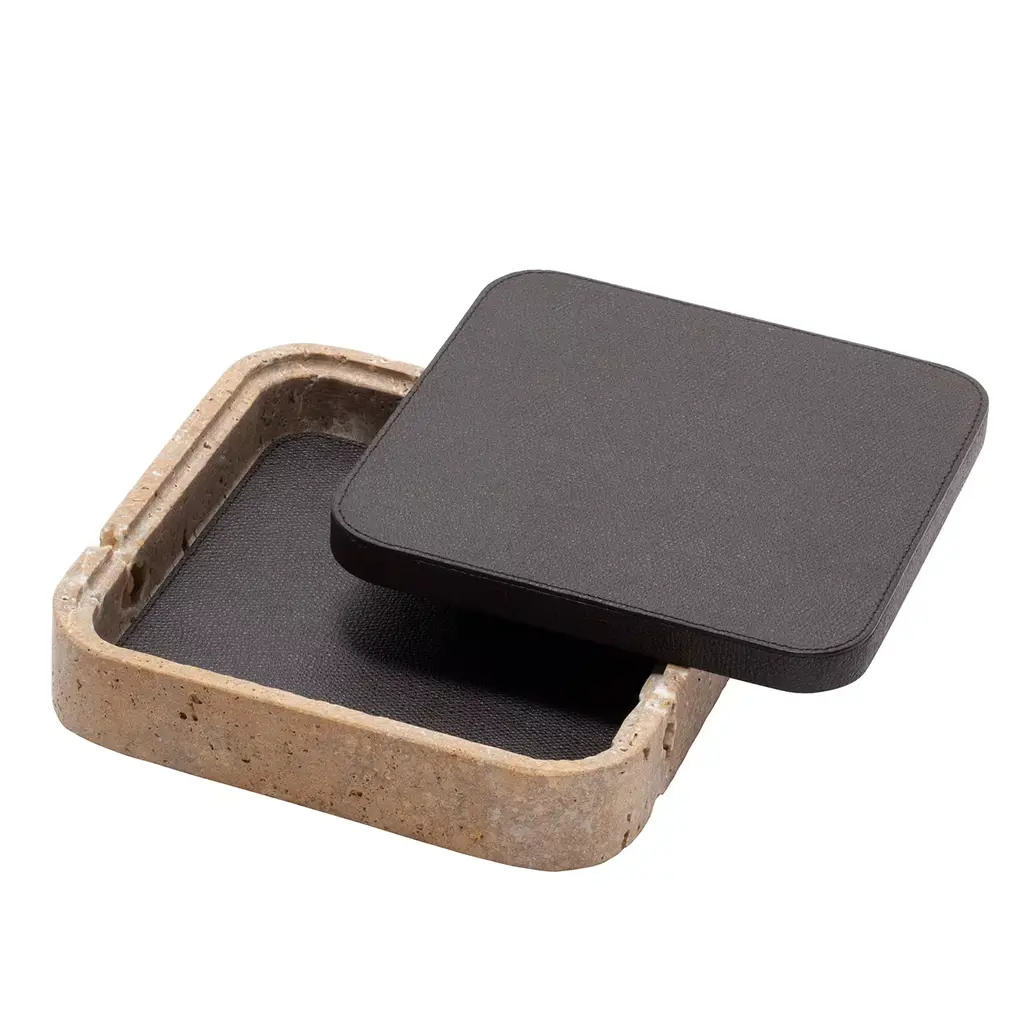 Featuring minimal geometric shapes, these boxes combine the beauty of travertine in several nuances of choice with the finest Italian leather. Custom sizes are available on request.