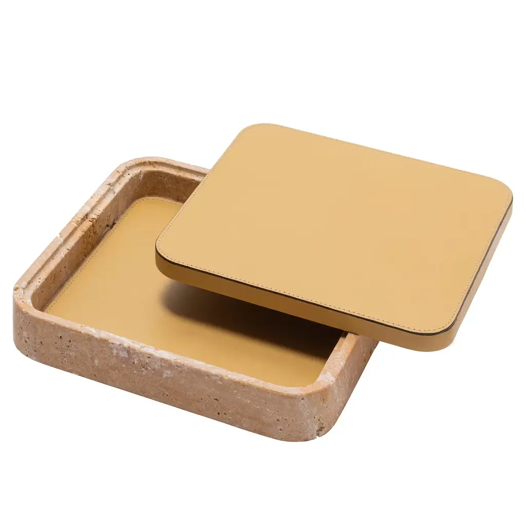 Featuring minimal geometric shapes, these boxes combine the beauty of travertine in several nuances of choice with the finest Italian leather. Custom sizes are available on request.