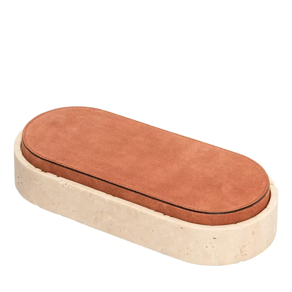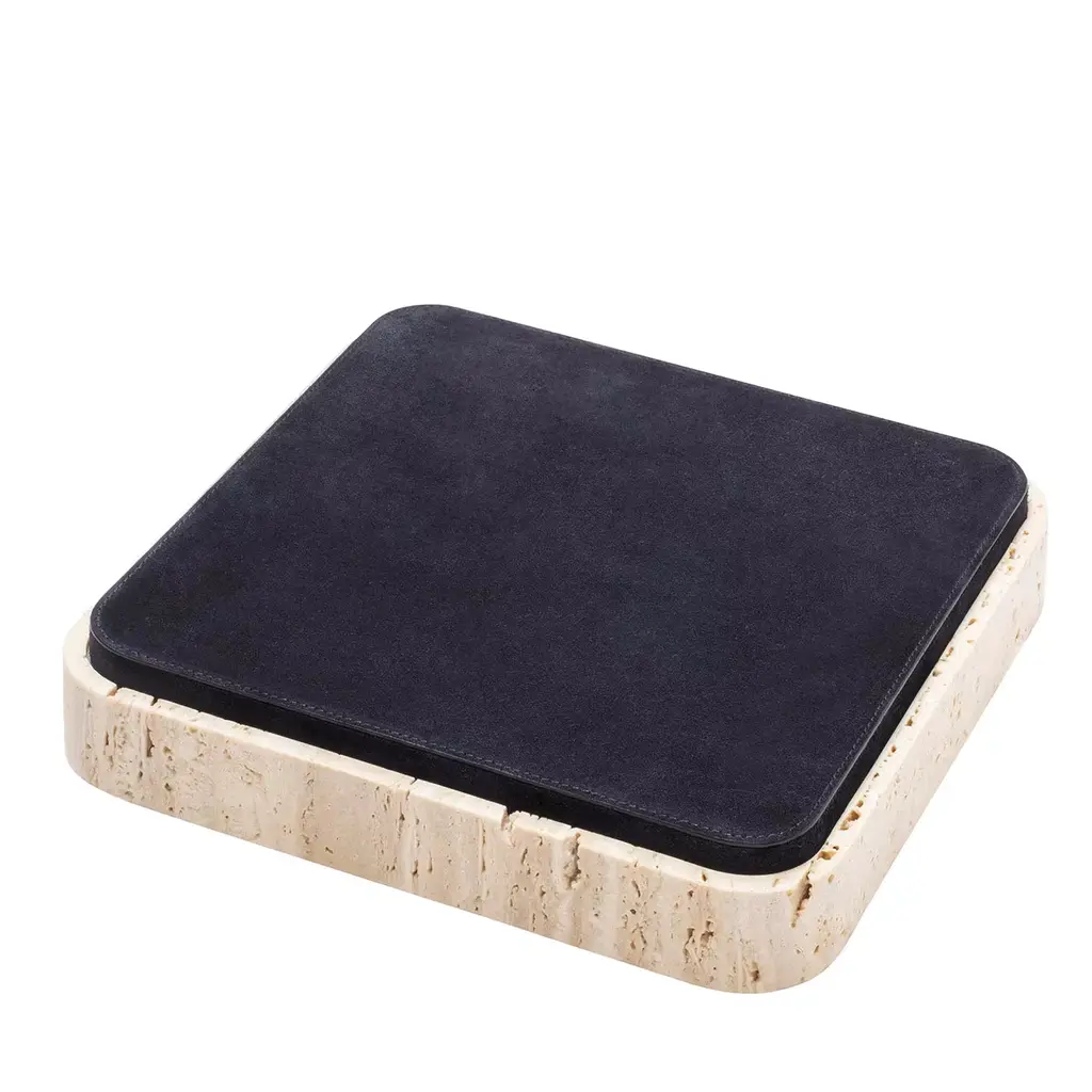 Featuring minimal geometric shapes, these boxes combine the beauty of travertine in several nuances of choice with the finest Italian leather. Custom sizes are available on request.