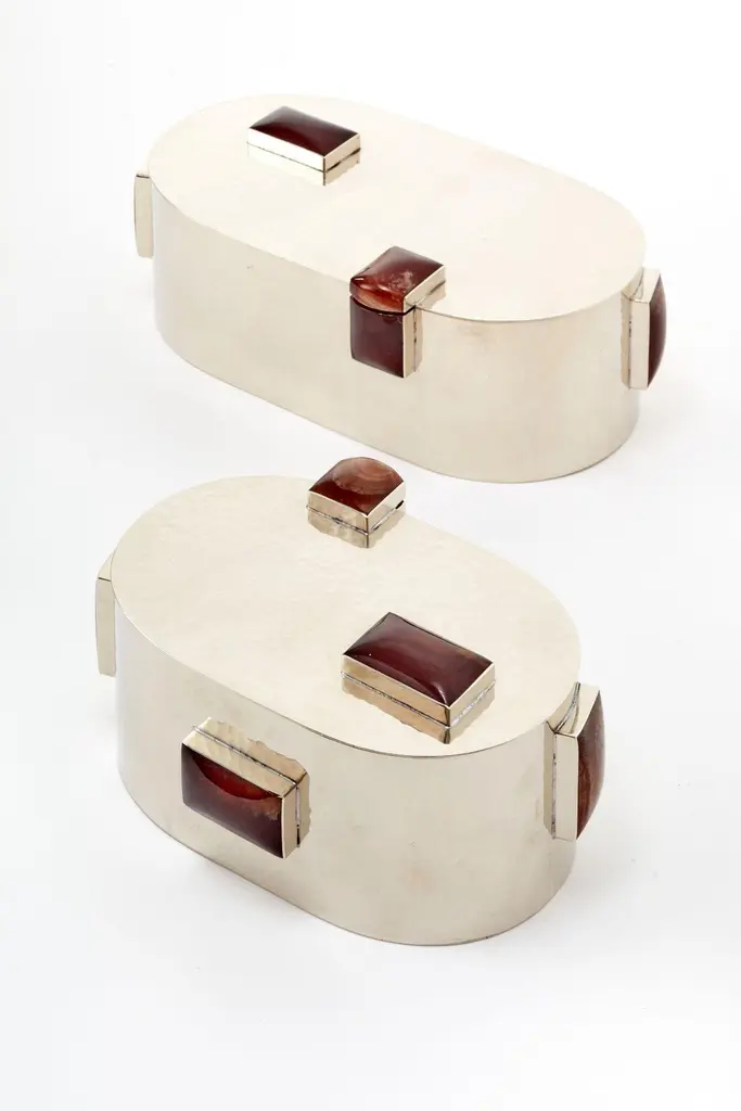 Glaciar Large Silver Alpaca & Bordeaux Onyx Stone Box