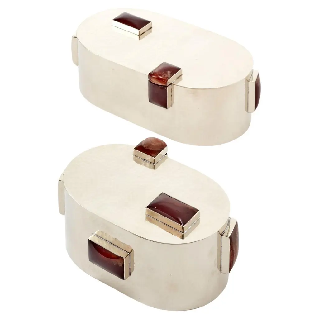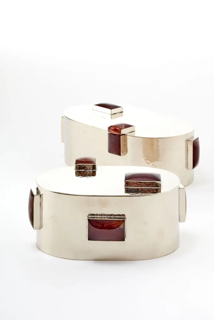 Glaciar Small Silver Alpaca & Bordeaux Onyx Stone Box