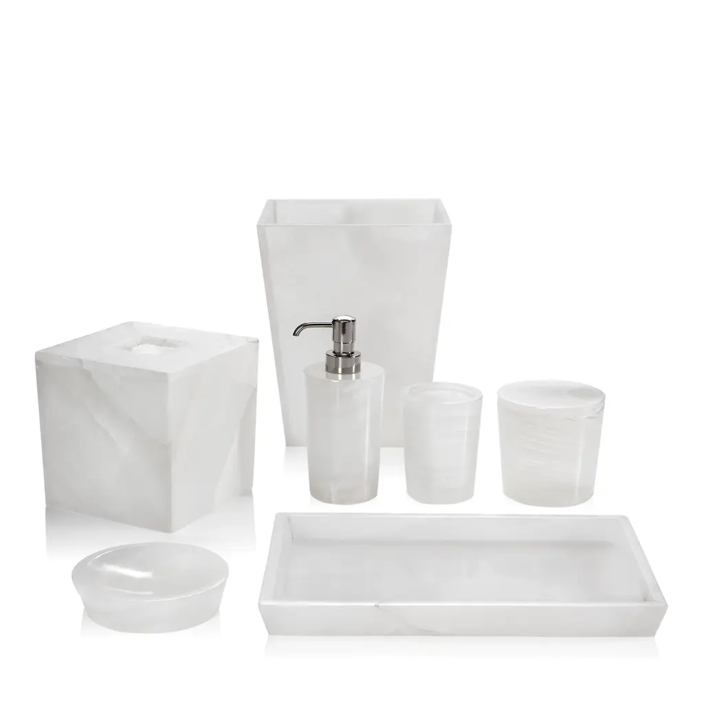 This harvested white onyx is found only in central Mexico and hand-finished to a polished gloss. Due to the natural stone, please allow for color variations within each piece.