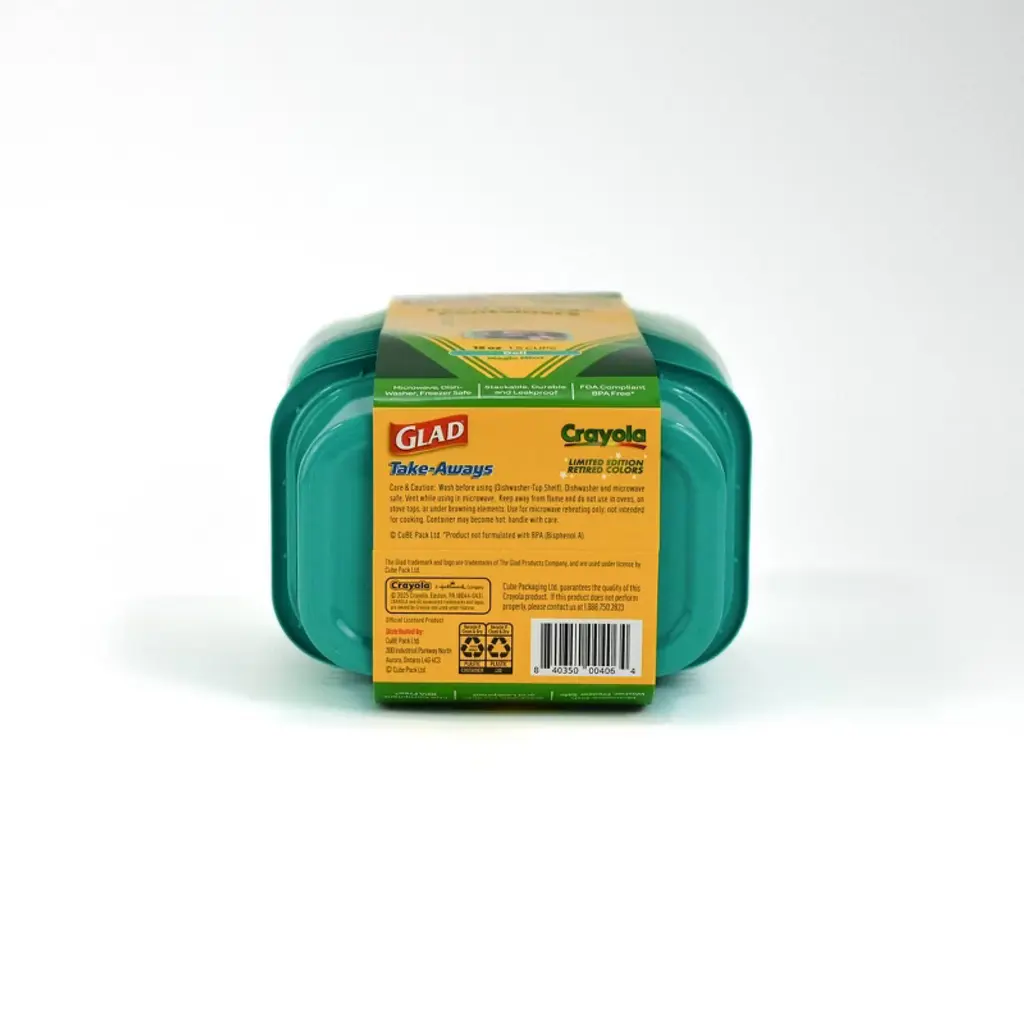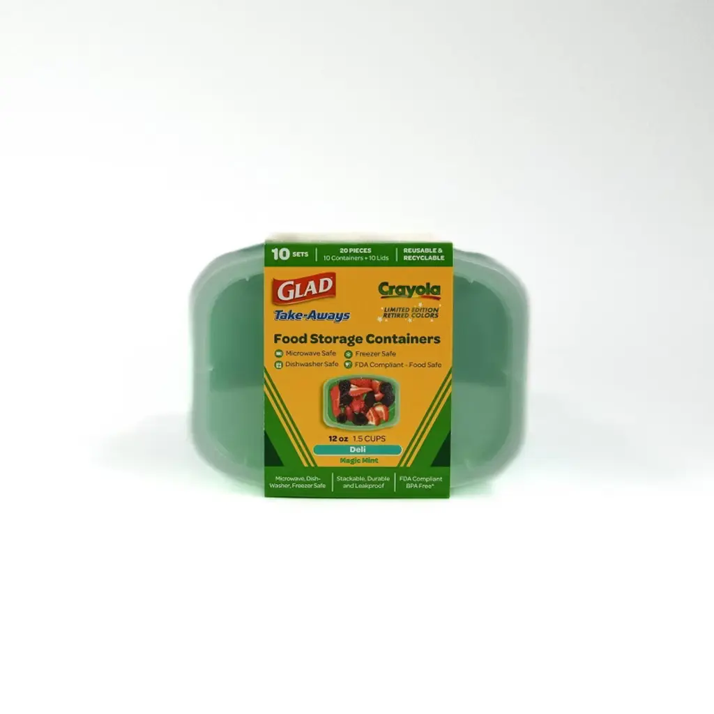 Add a cool pop of Crayola colour to your everyday storage with this 12oz deli/snack container in refreshing Magic Mint. Built with the trusted performance of Glad, this container is perfect for keeping lunches, veggies, or snacks sealed and secure. Durable, reusable, and always fun—because storing your food should spark creativity too!