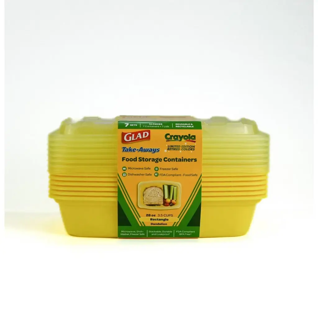 Glad Take-aways Crayola Retired Colors 28oz/7pk Rectangle Food Storage Containers - Dandelion