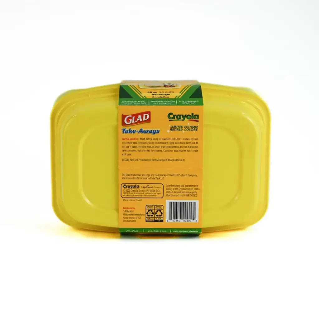Bring home the trusted durability of Glad, now bursting with Crayola’s signature colour! This 28oz rectangular container in Dandelion Yellow combines everyday functionality with a fun, vibrant twist. Whether you're storing leftovers or packing lunches, it’s a playful way to add cheer to your kitchen while keeping food fresh, secure, and ready for anything.