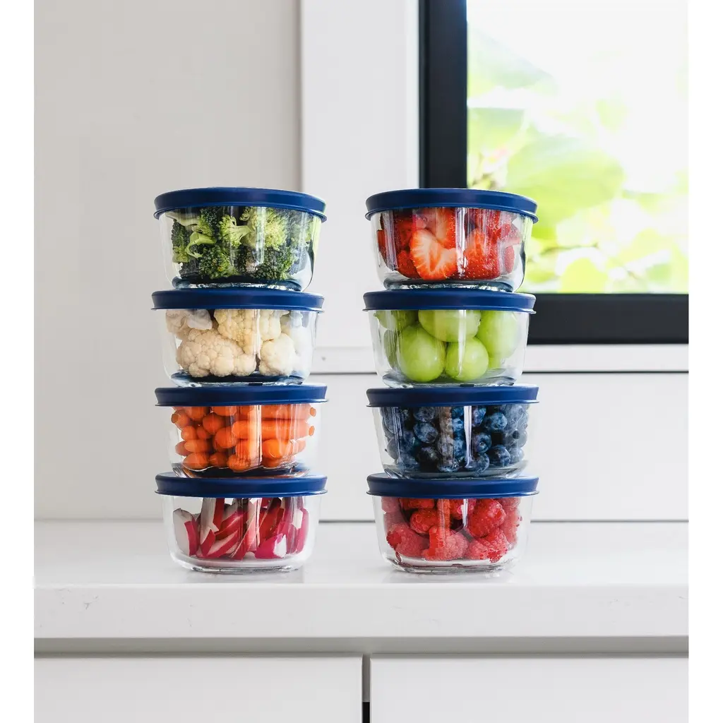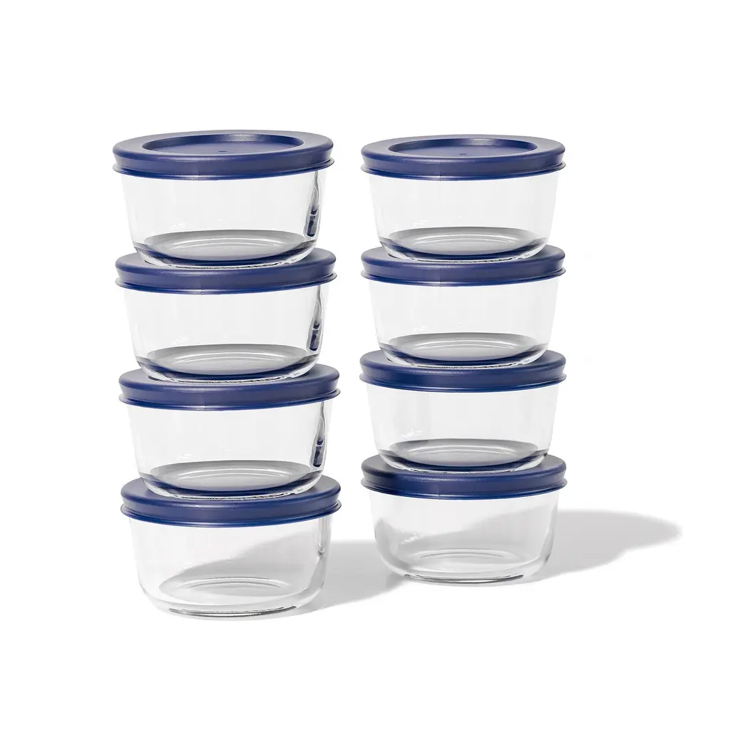 Glass Food Storage Containers Set - Round, 1-Cup (8oz) Bpa-Free, Microwave & Oven Safe, Airtight Lids - 16 Piece Set (8 Containers + 8 Lids) - Blue