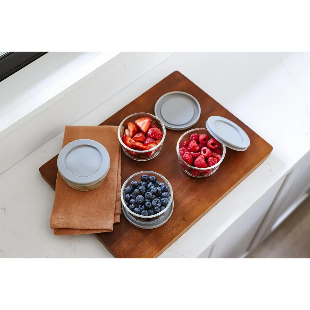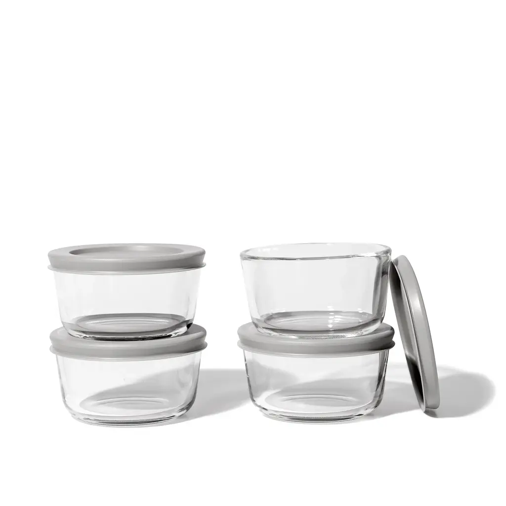 Glass Food Storage Containers Set - Round, 1-Cup (8oz) Bpa-Free, Microwave & Oven Safe, Airtight Lids - 8 Piece Set (4 Containers + 4 Lids) - Grey