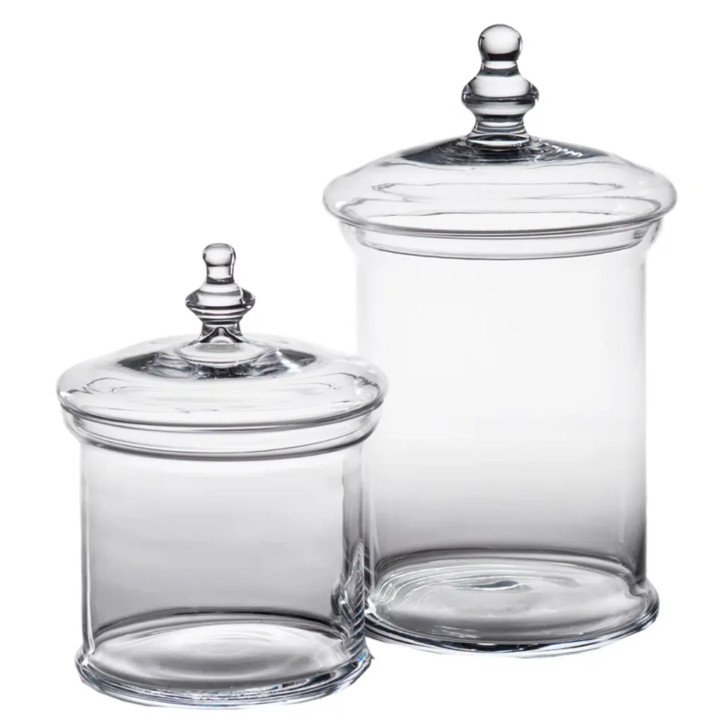 Style and function meet in the middle for our half-gallon glass storage jar. Fashioned after classic candy or apothecary display containers, it's a pretty addition to your kitchen countertop. Great for displaying quick-use items, such as fruit or individually packaged snack items, this new kitchen essential includes a removable lid.