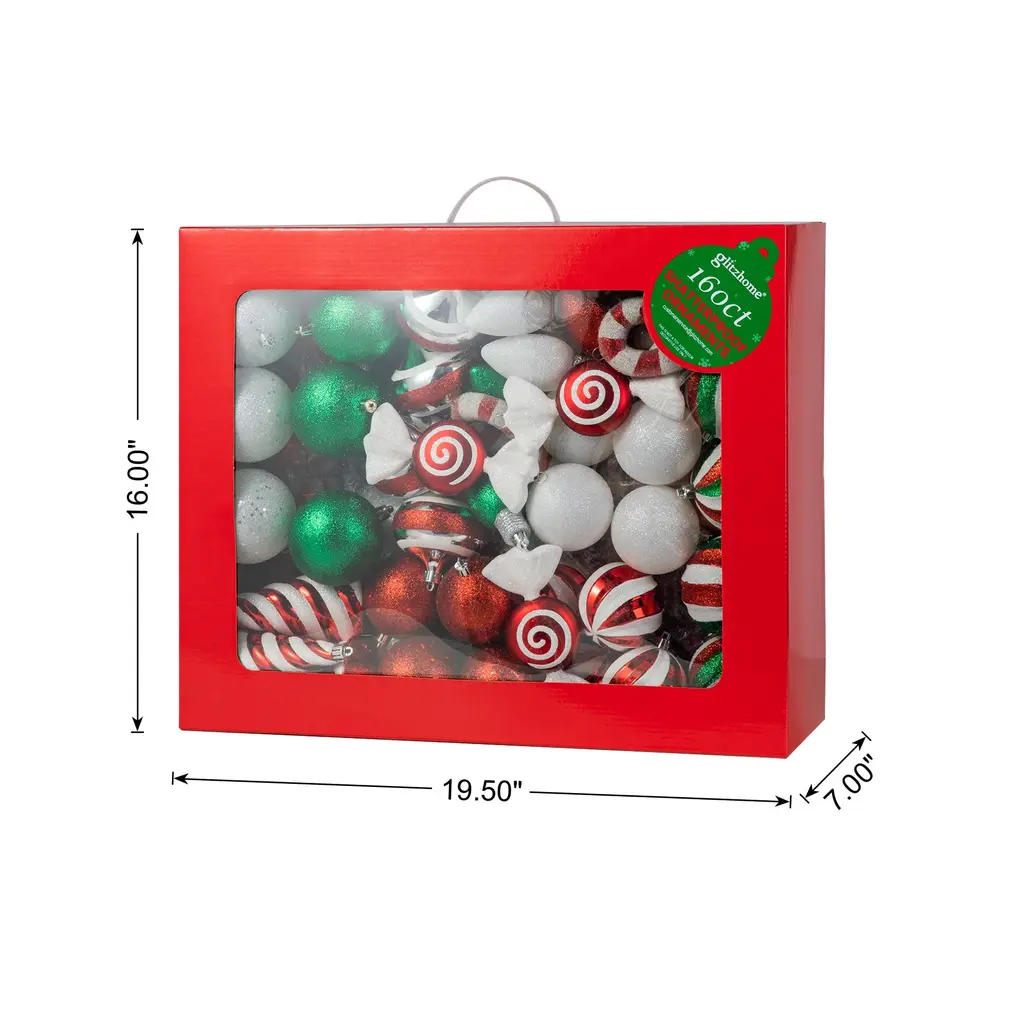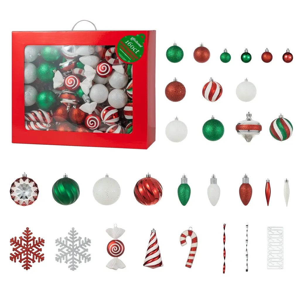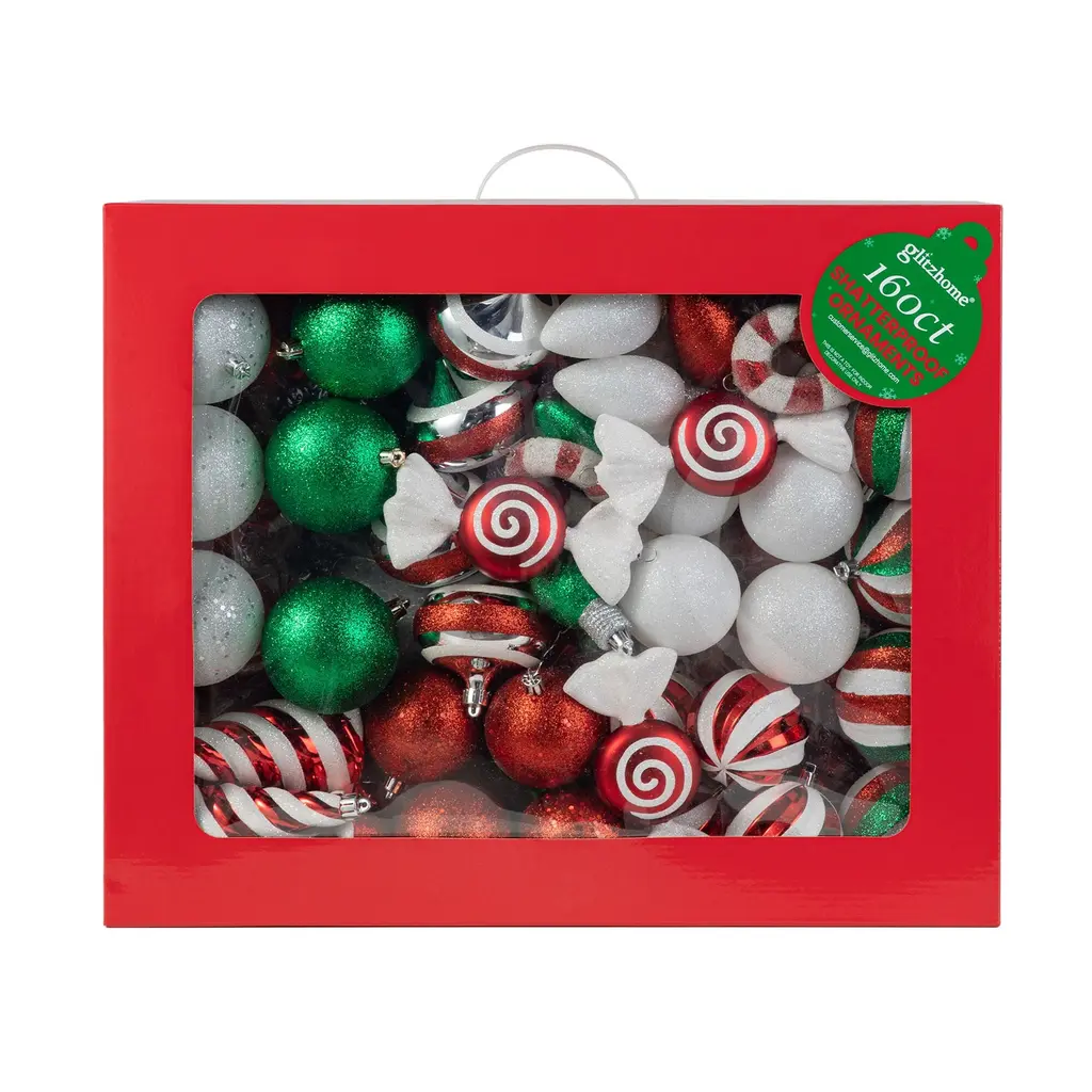 Glitzhome 160ct Christmas Deluxe 29-Finish Boxed Ball Shatterproof Ornaments - Green/white/red