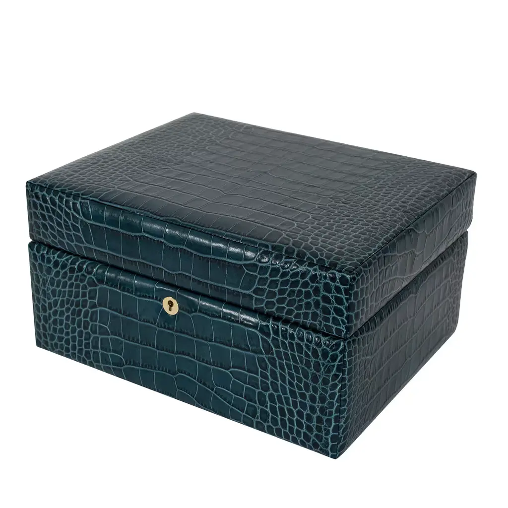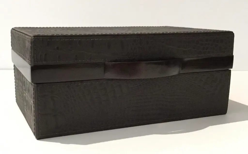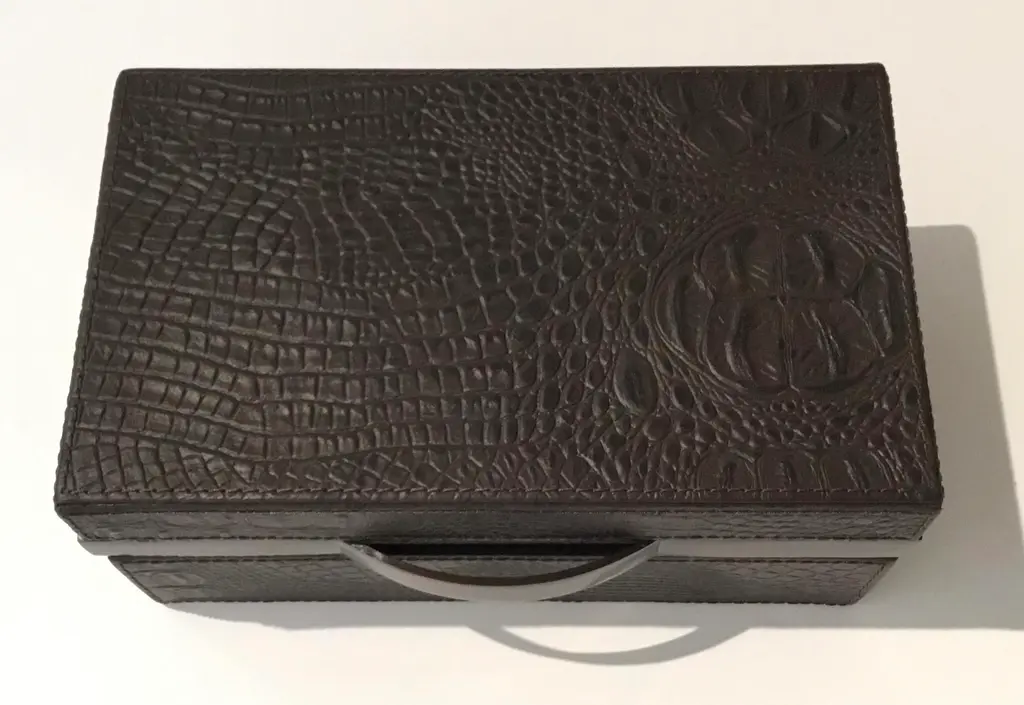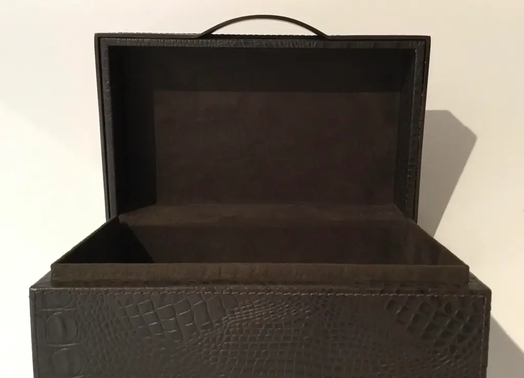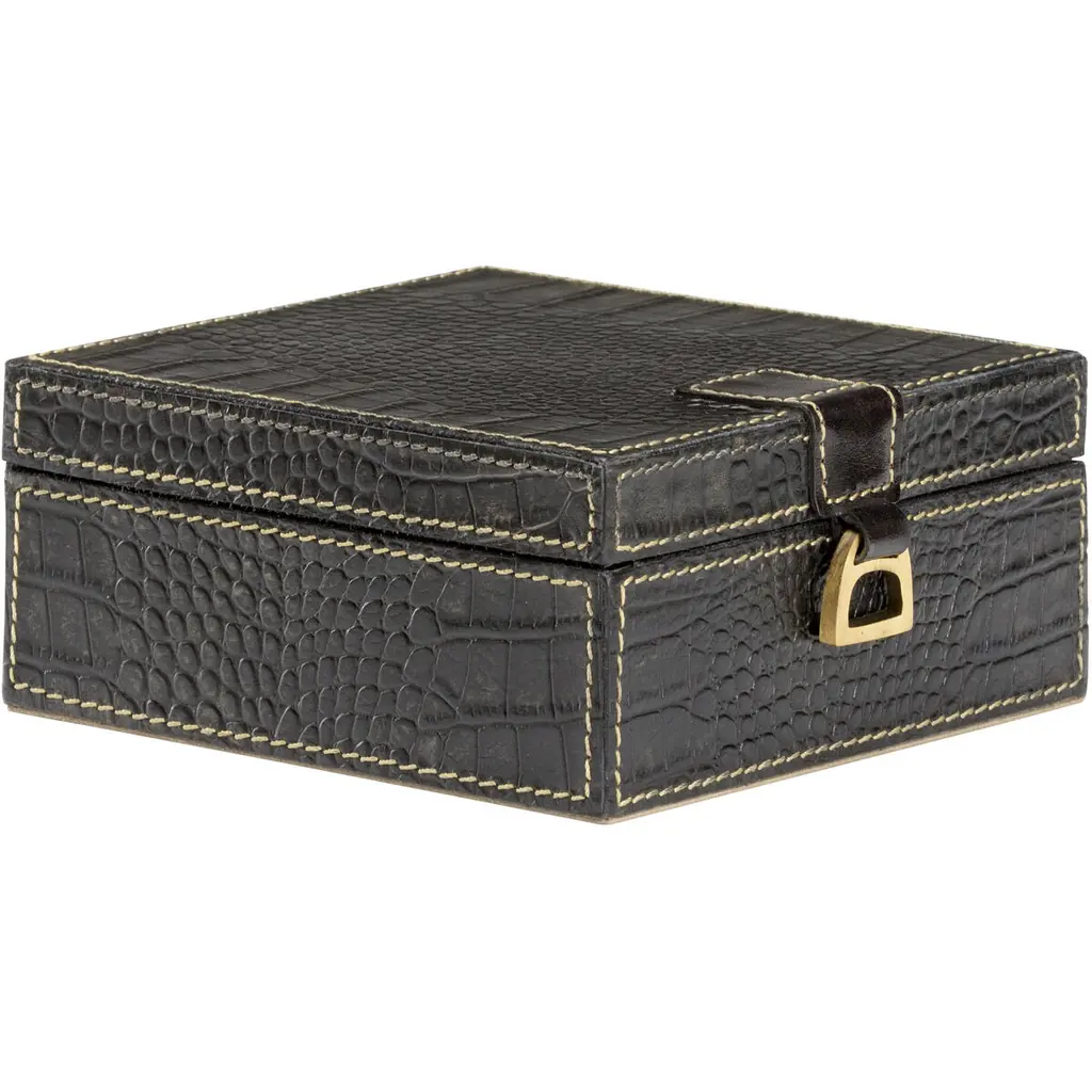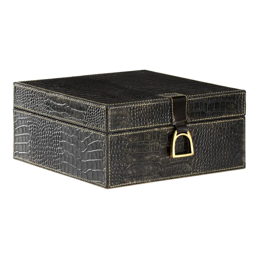 Stylish Global Views Modern Medium Brown Croc Box, leather exterior, velvet lined inside, showroom floor sample