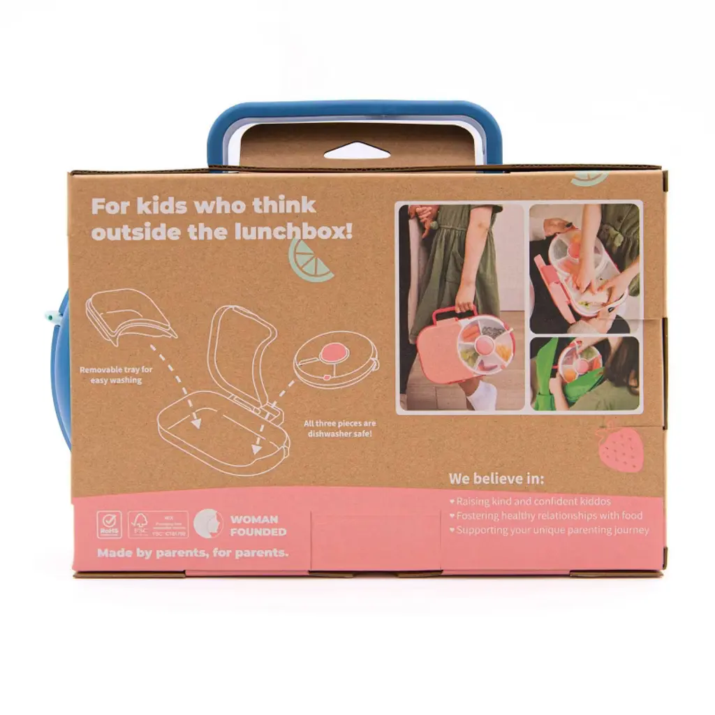 Give a happy hello to the GoBe Lunchbox! No matter where busy days, outings, or adventures take you and your little one, the GoBe Lunchbox’s innovative design will make mealtime a walk in the park (literally!). Complete with a carrying handle, bento compartment (that can hold at least a whole sandwich), and one of our Small Snack Spinner Flips, the Lunchbox keeps everything together in a beautifully convenient package. With a fun, interactive push button, the GoBe Lunchbox makes lunchtime a breeze and allows parents and kids to pack a healthy, fun, and balanced lunch with all of your kids favorites like sandwiches, wraps, fruit, veggies, and snacks to fit every snacking mood! Leave picky eating behind with a lunchbox that lets parents provide and children decide! For the ones most precious to you, we sought out only the best and safest materials. We made sure that the GoBe Lunchbox is made with only BPA, PVC, and Phthalate free materials. Fits everything your kiddo would want for a healthy, delicious meal. With a bento compartment designed to hold at least a whole sandwich along with the 5 compartments in the Small Snack Spinner Flip, there’s enough space to bring everything your little one is craving (or may want to try)! Not only is the GoBe Lunchbox made from the safest materials, it’s also top rack dishwasher safe and easy to clean! Your perfect lunchtime companion for school, camp, daycare, picnics, home and more!