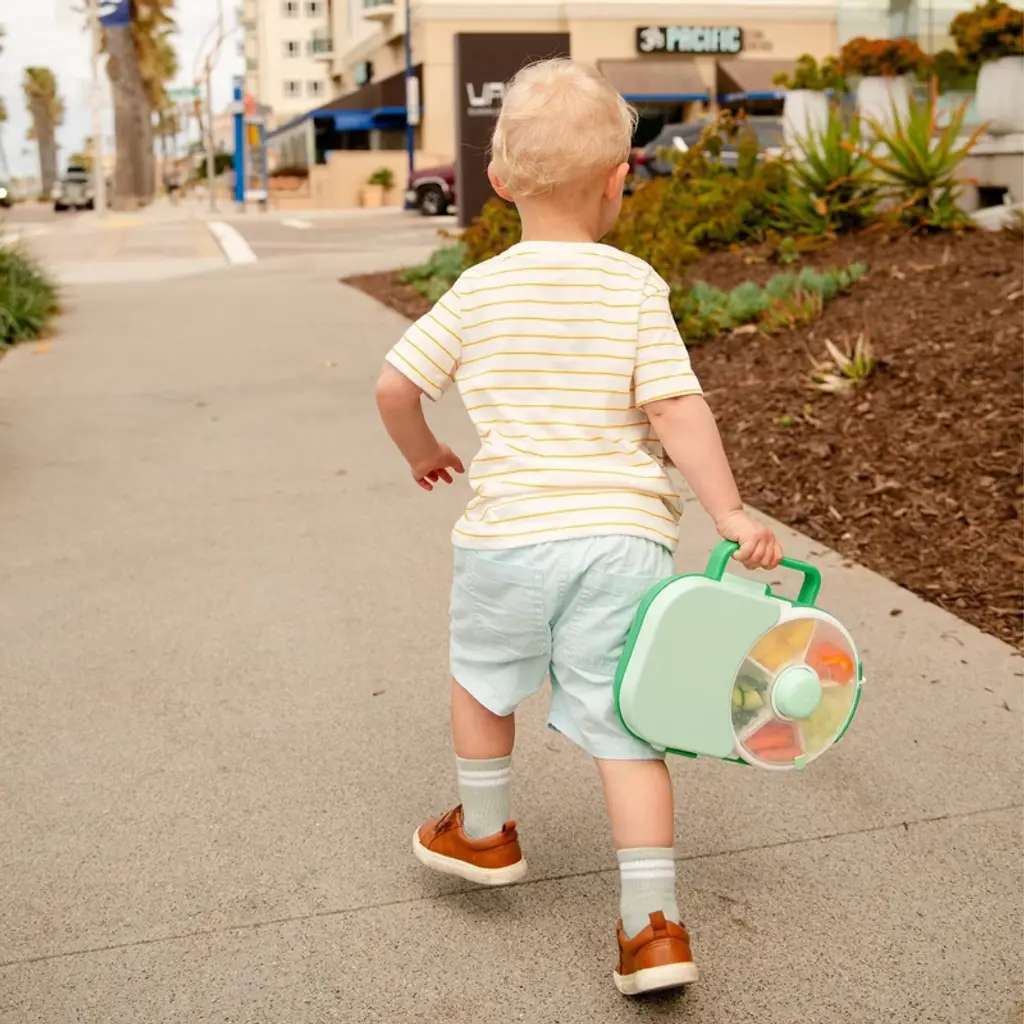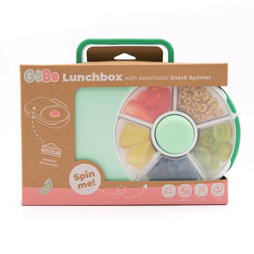 Give a happy hello to the GoBe Lunchbox! No matter where busy days, outings, or adventures take you and your little one, the GoBe Lunchbox’s innovative design will make mealtime a walk in the park (literally!). Complete with a carrying handle, bento compartment (that can hold at least a whole sandwich), and one of our Small Snack Spinner Flips, the Lunchbox keeps everything together in a beautifully convenient package. With a fun, interactive push button, the GoBe Lunchbox makes lunchtime a breeze and allows parents and kids to pack a healthy, fun, and balanced lunch with all of your kids favorites like sandwiches, wraps, fruit, veggies, and snacks to fit every snacking mood! Leave picky eating behind with a lunchbox that lets parents provide and children decide! For the ones most precious to you, we sought out only the best and safest materials. We made sure that the GoBe Lunchbox is made with only BPA, PVC, and Phthalate free materials. Fits everything your kiddo would want for a healthy, delicious meal. With a bento compartment designed to hold at least a whole sandwich along with the 5 compartments in the Small Snack Spinner Flip, there’s enough space to bring everything your little one is craving (or may want to try)! Not only is the GoBe Lunchbox made from the safest materials, it’s also top rack dishwasher safe and easy to clean! Your perfect lunchtime companion for school, camp, daycare, picnics, home and more!