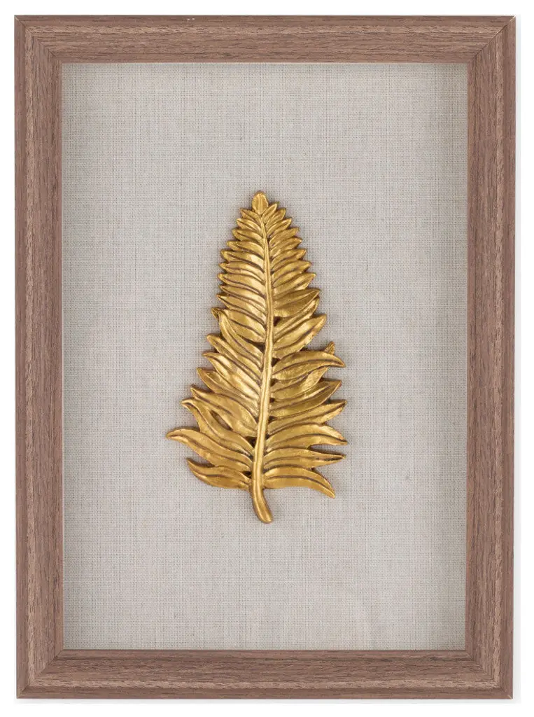 Accent your space with the elegant beauty of nature. This charming shadow box features a golden leaf mounted on a linen backing and finished with a wood look poly-composite frame. Great on its own or pair it with it''s matching counterparts for a more impactful design. Each sold separatelyProduct Size: 9" x 2" x 12"Each sold separatelyFramedReady to Hang