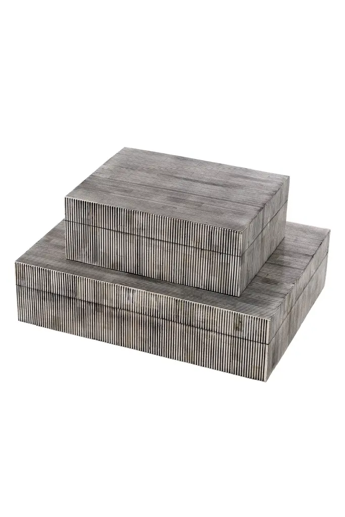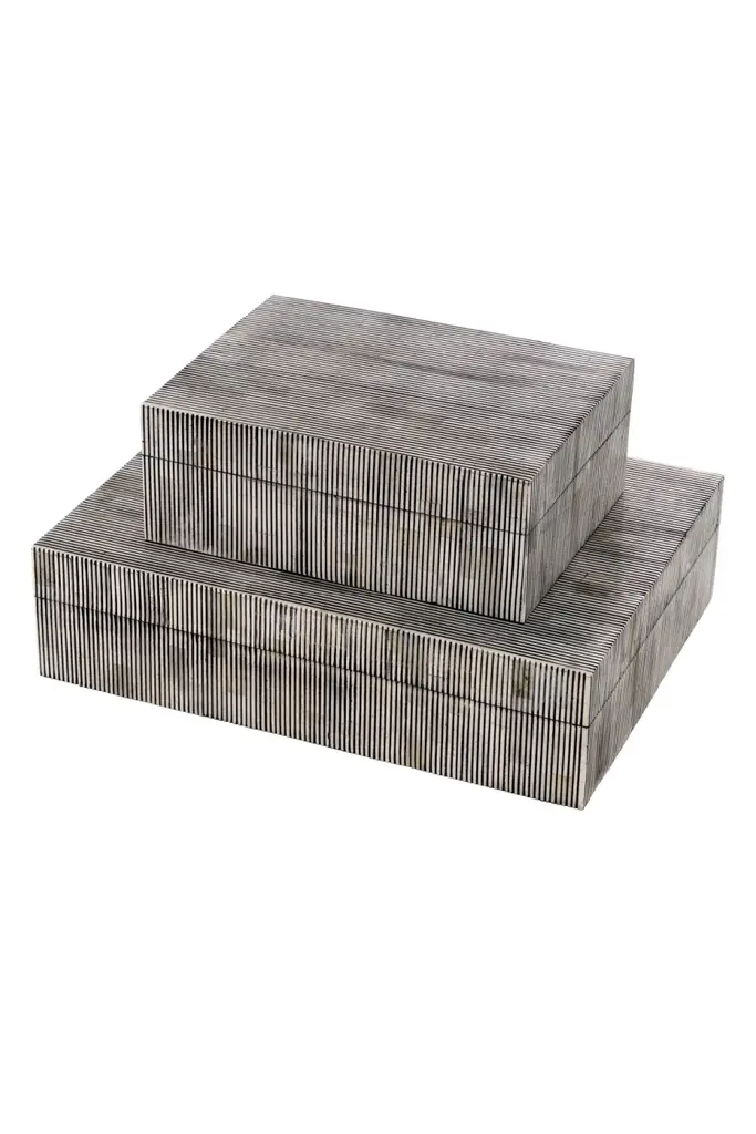 Safely store trinkets, memorabilias or any small items in this rectangular, gray bone box. Lucille by Eichholtz has subtle design that blends with any interior. Pile it up in a lovely display or keep it in your wardrobe.