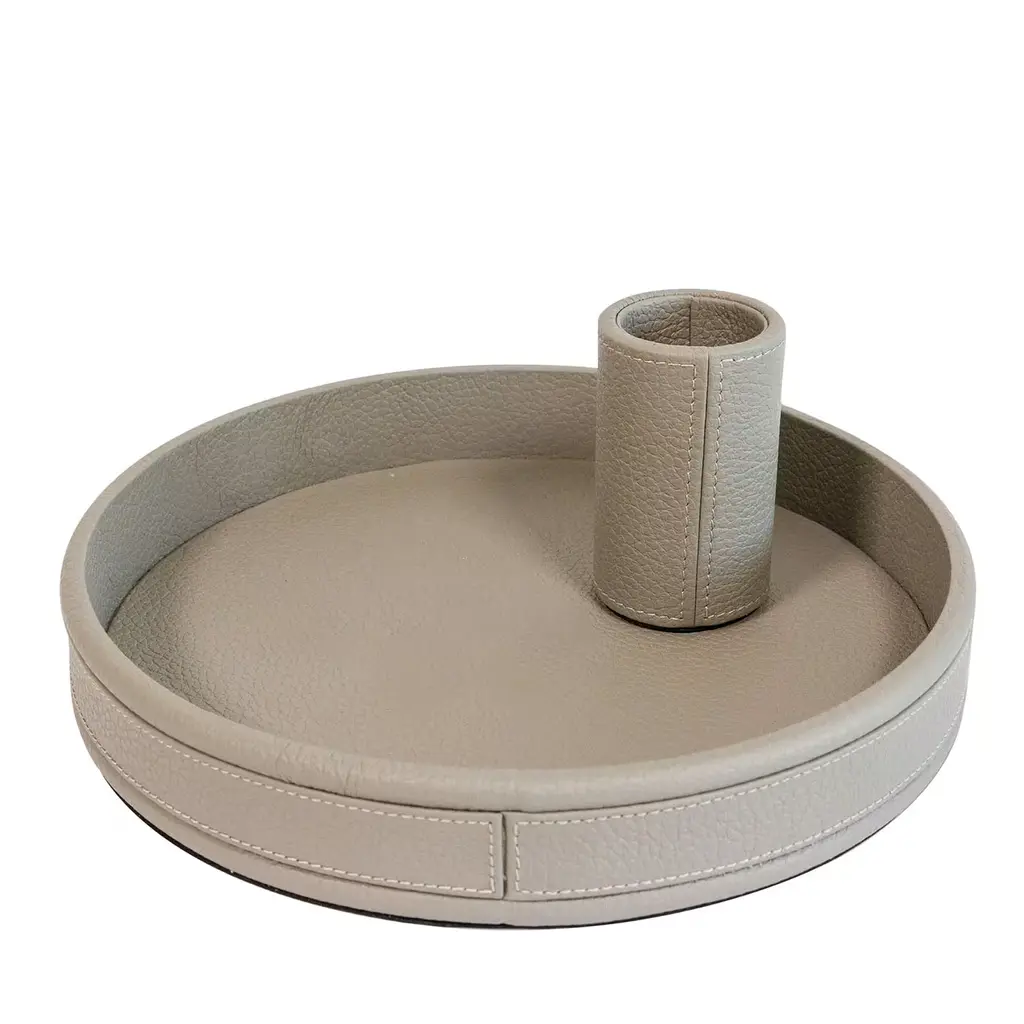 A practical design to complement a bathroom decor of elegant and contemporary style, this box with a lid is entirely handcrafted of steel and polystone. Partly upholstered on its rounded shape with a magnificent gray-colored faux leather cover. Available in other colors upon choice, please contact the Concierge for more information.