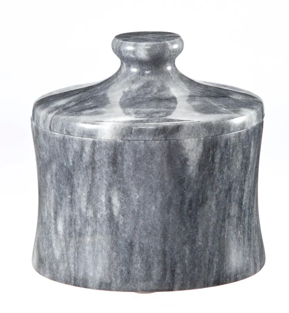 A Vinca Collection Cloud Gray Marble 4" x 4" Canister.