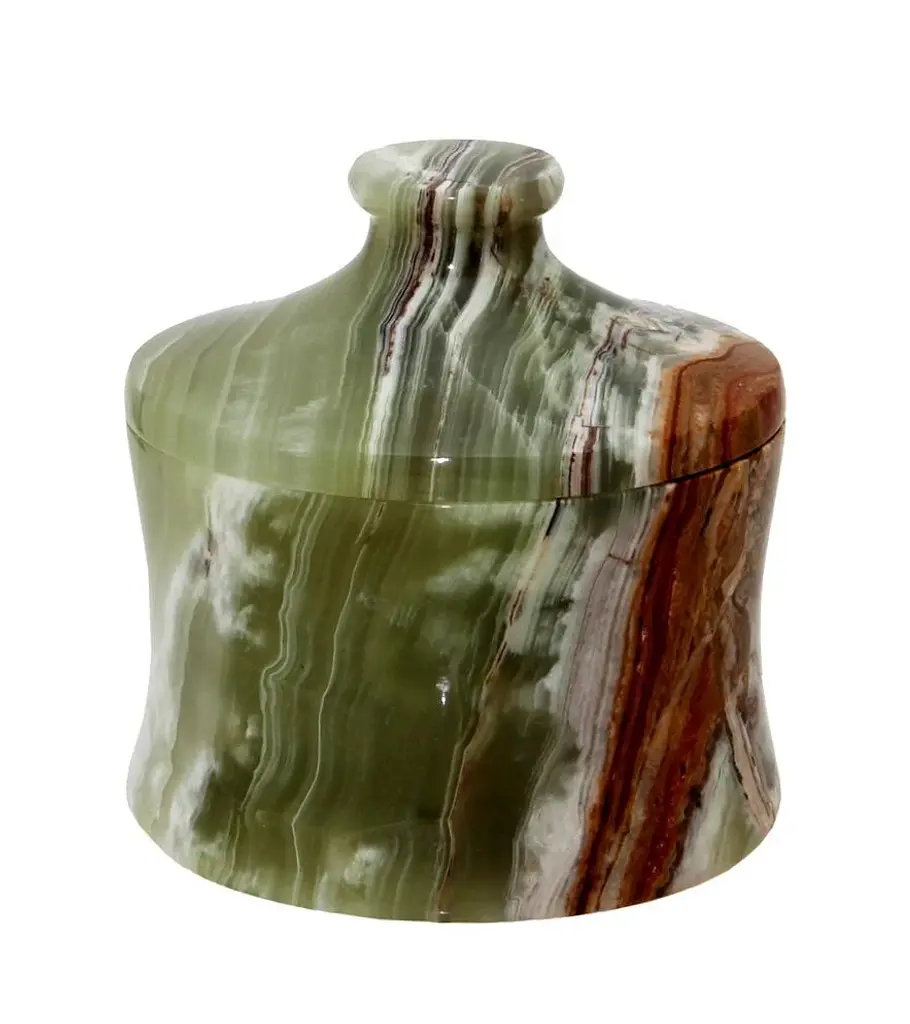 A Vinca Collection Whirl Green Onyx 4" x 4" Canister.