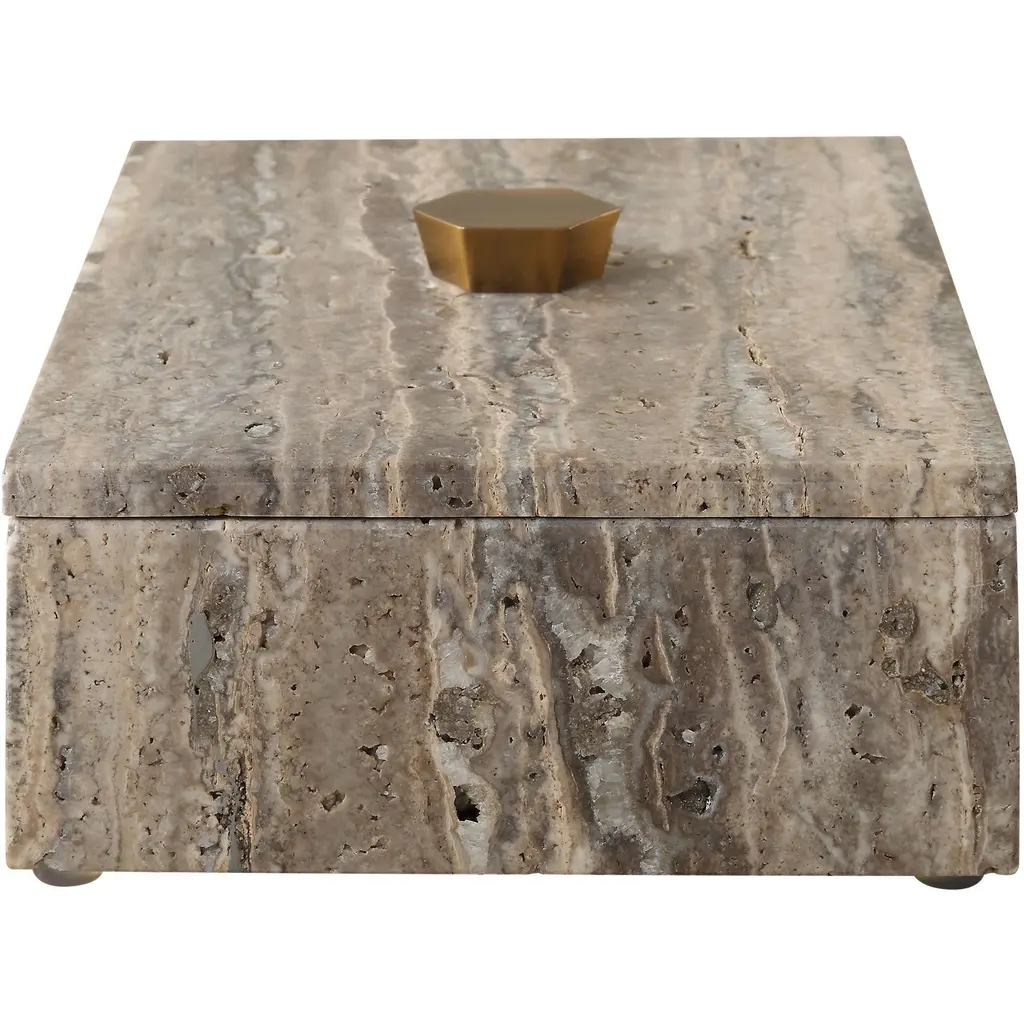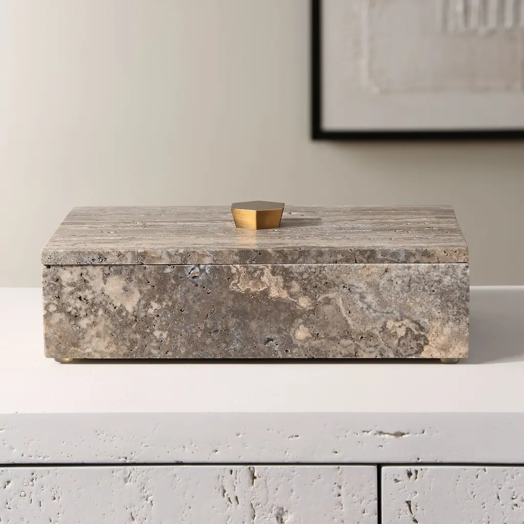 Need An Elegant Hide Away To Stash Small Items This Gray Unfilled Travertine Box With Bronze Handle And Lift-off Lid Is The Perfect Spot. Because It Is A Natural Stone, Each Piece Of Travertine Is Unique.