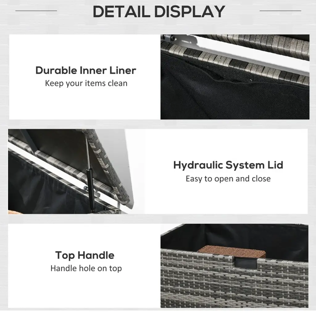Gulches 113 Gallon Deck Box, Rattan Outdoor Storage Box, Storage Container For Indoor, Patio Furniture Cushions, Pool Supplies, Garden Tool, Dark Gray