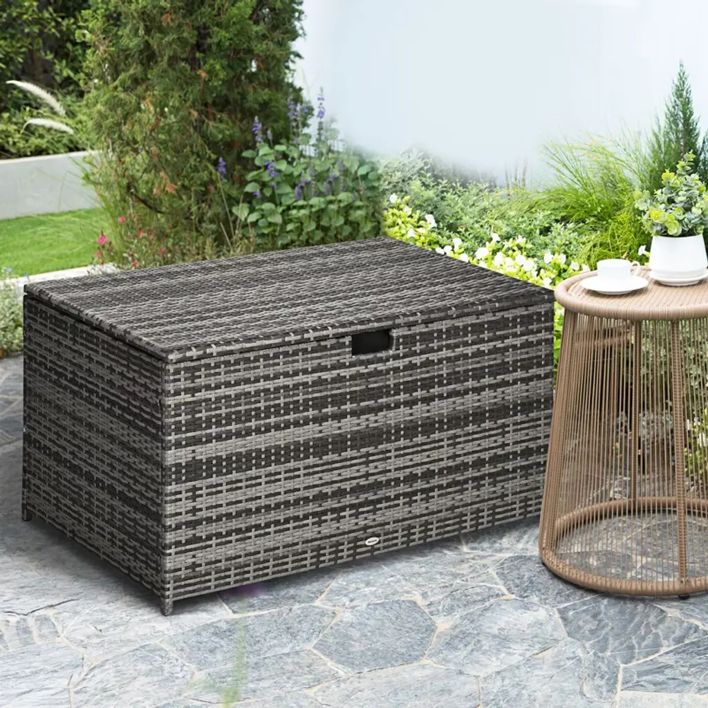 Discover the perfect storage solution with the Gulches Outsunny 113 Gallon Deck Box! This waterproof rattan outdoor storage box is ideal for keeping your patio furniture cushions, pool supplies, and garden tools organized and protected. Its dark gray finish adds a modern touch to your outdoor space, while the spacious interior provides ample room for all your essentials. Keep your outdoor area tidy and stylish with this functional and attractive storage container!