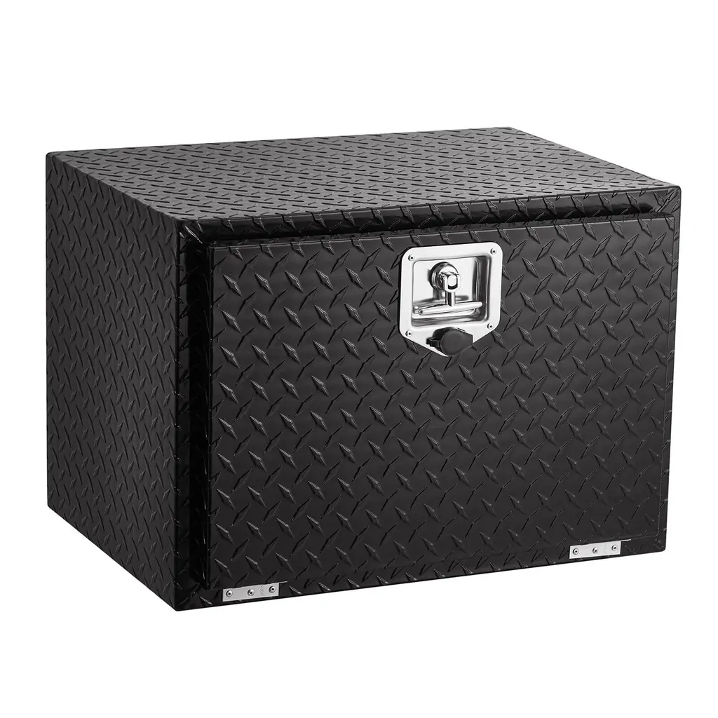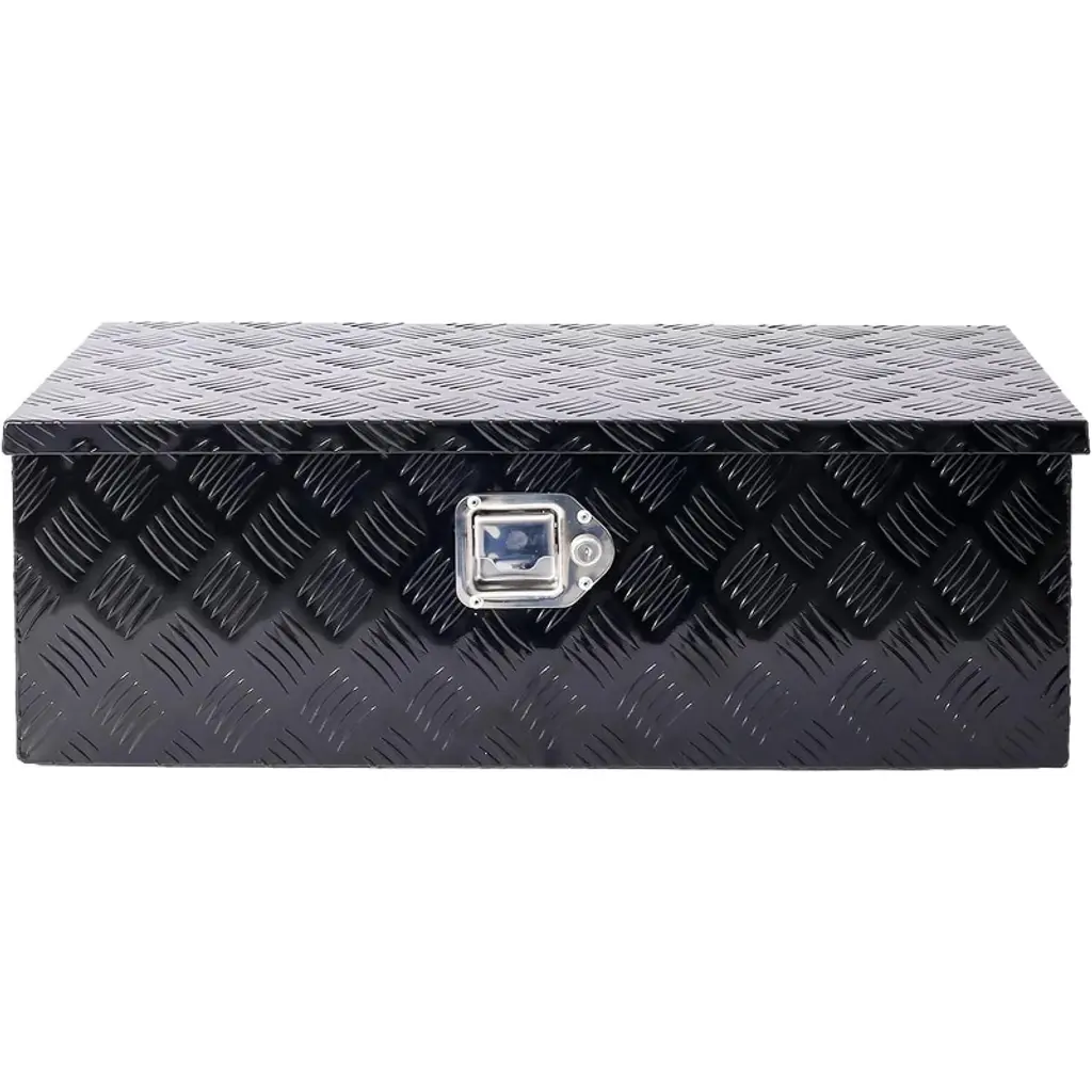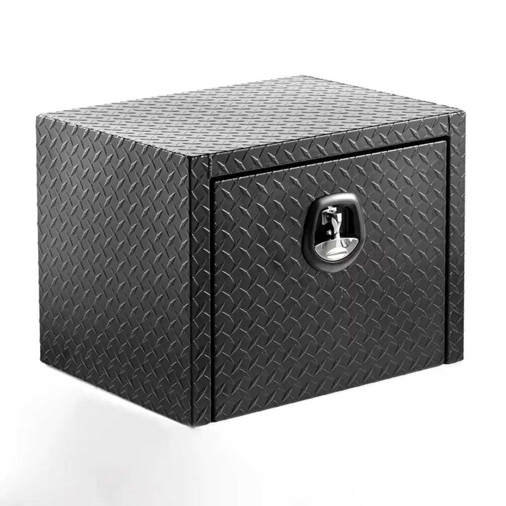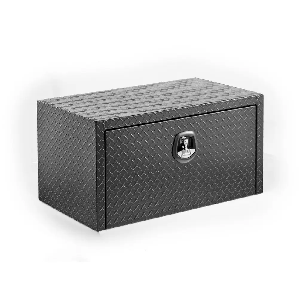 This Pro Series underbody truck tool box combines durability and functionality, crafted from 0.1" diamond thread aluminum with a scratch-resistant matte black finish. Available in 24" to 48" lengths, it fits seamlessly under flatbeds, dump trucks, and trailers. The 90-degree opening door with stainless hinges allows easy access, while the die-cast compression latch enables one-handed operation. With superior waterproofing (drip rail sealing ring) and a sleek whale tail lock, it keeps tools dry, secure, and organized--perfect for professionals and DIY enthusiasts alike.