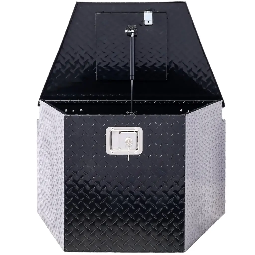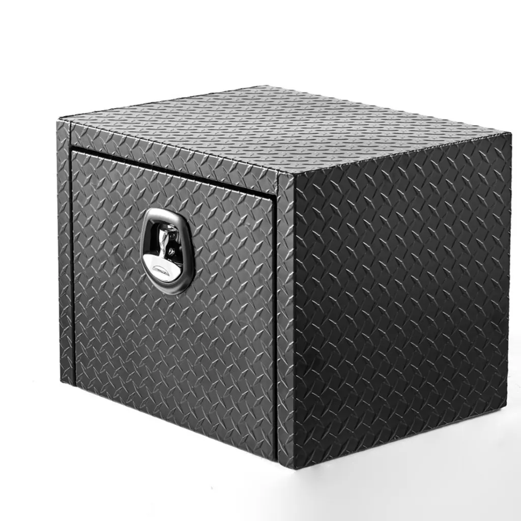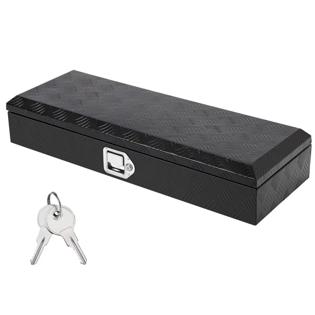 This Pro Series underbody truck tool box combines strength and style, made from 0.1" diamond thread aluminum with a scratch-resistant matte black finish. Available in 24"-48" lengths, it fits perfectly under flatbeds, dump trucks, and trailers. The 90-degree opening door with stainless hidden hinges ensures easy access, while the die-cast latch allows one-handed use and the whale tail lock adds security. With a drip rail and sealing ring for waterproofing, it keeps tools dry and organized--perfect for professionals and DIY enthusiasts upgrading their work vehicles.