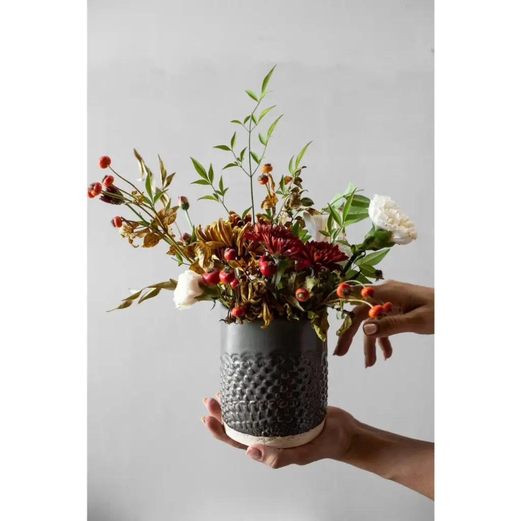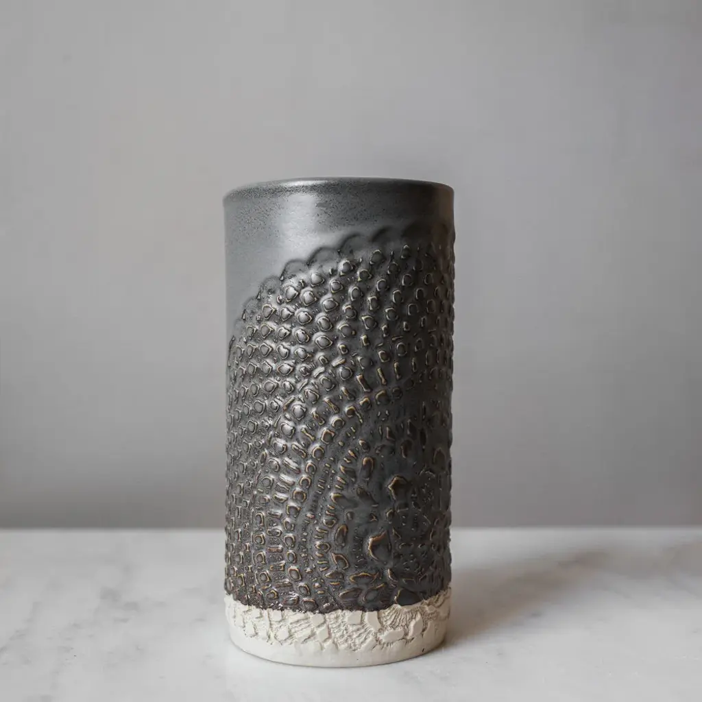 Hand-built with care and adorned with delicate lace, our stunning ceramic canister is not only a beautiful addition to any kitchen, but a functional one too. Use it to hold spoons and utensils or as a vase for a large floral arrangement. Elegant and versatile, it's a must-have for any home.