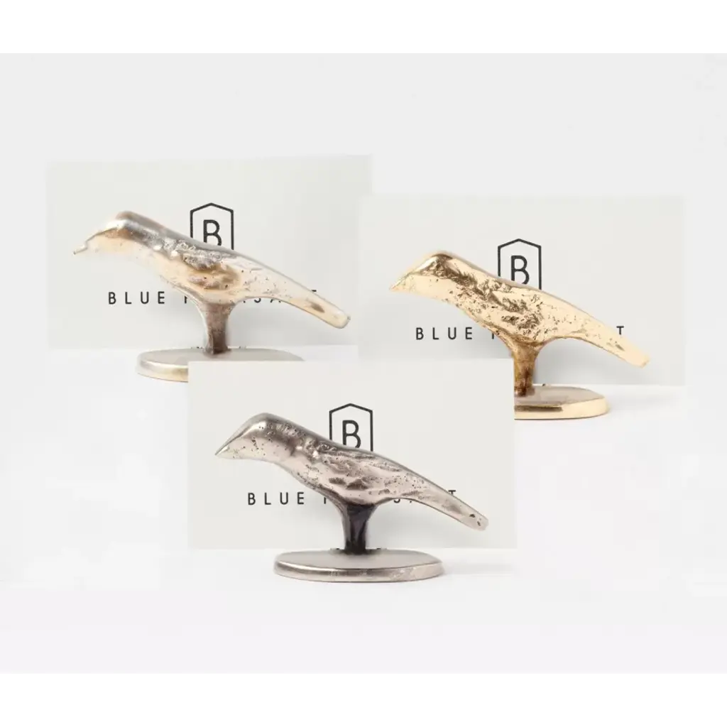 Hailey Bird Card Holder, Antiqued Pewter, Brass, Boxed Set Of 4