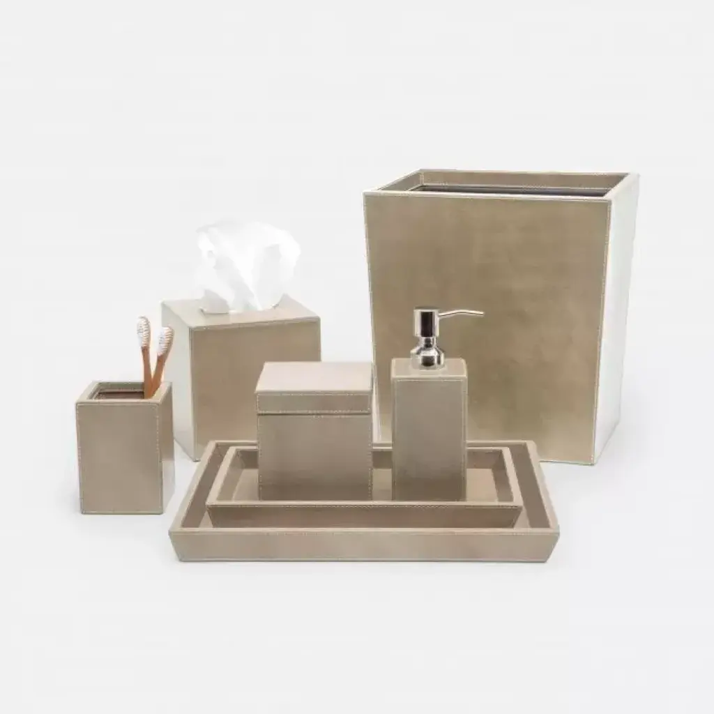 The tailored look of our Hampton collection leaves no question about a setting’s sophistication. The leather adds a dash of men’s club composure and makes a space feel established regardless of age. Finish: Storm; Material: Full-Grain Leather The designers at Pigeon & Poodle believe the details of a home are just as important as the furniture. A gorgeous toothbrush holder or handcrafted canister can elevate an entire bath, the perfect frame can heighten the feel of a whole space, and a good-looking storage basket can be your look’s missing link. With thoughtful design and top-notch craftsmanship, Pigeon & Poodle create home accessories with the care and attention typically reserved for larger pieces of décor.