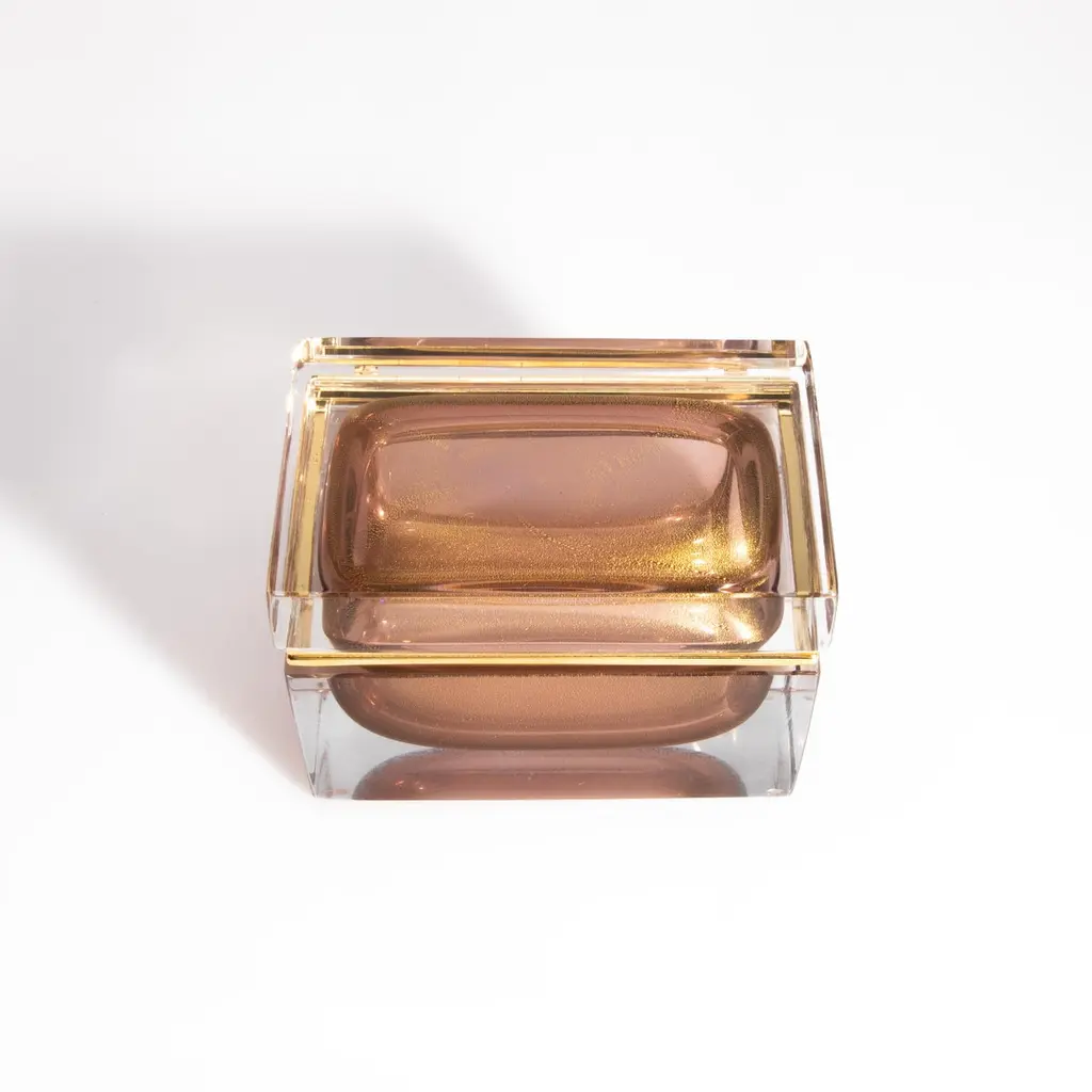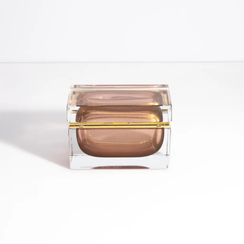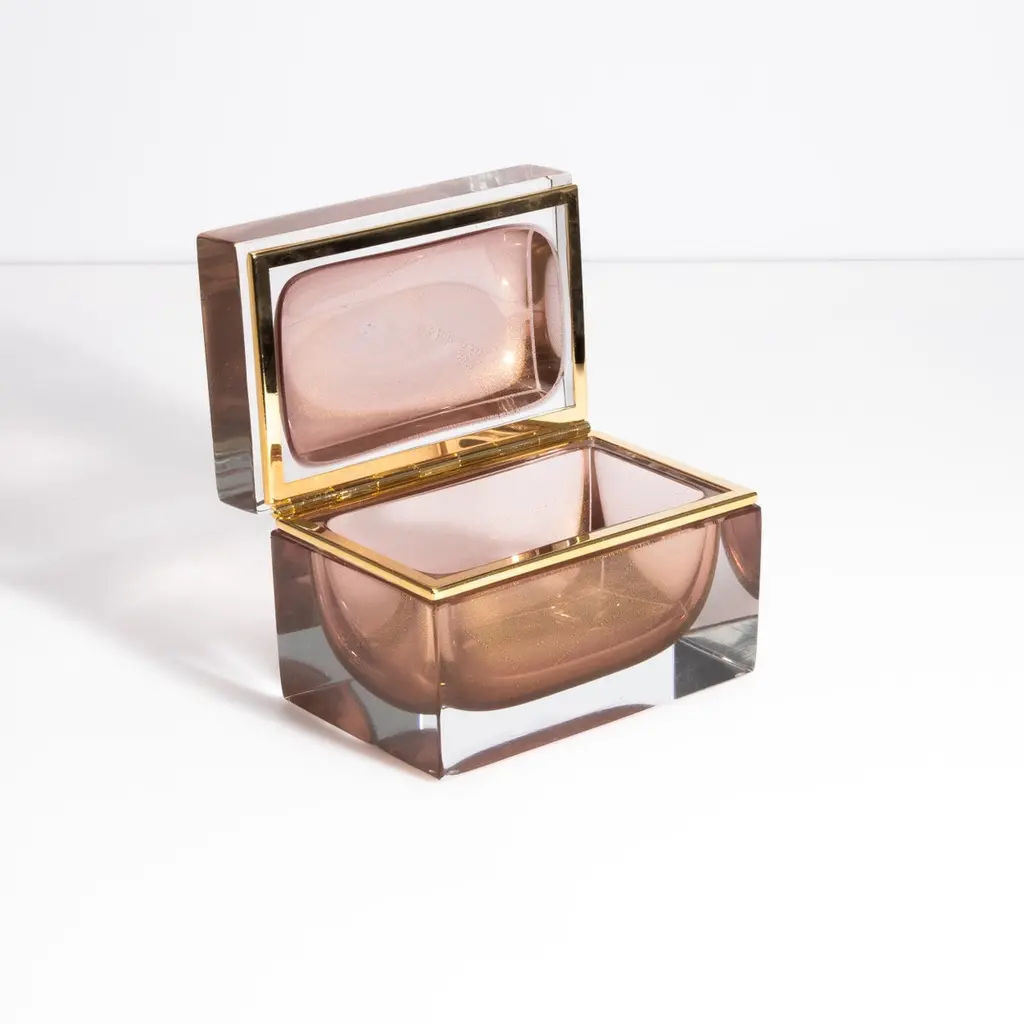 Hand Blown Murano Glass Box In Amethyst With 24 Karat Gold Flecks