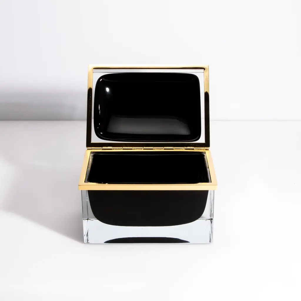 Hand Blown Murano Glass Box In Onyx Black With Brass Fittings
