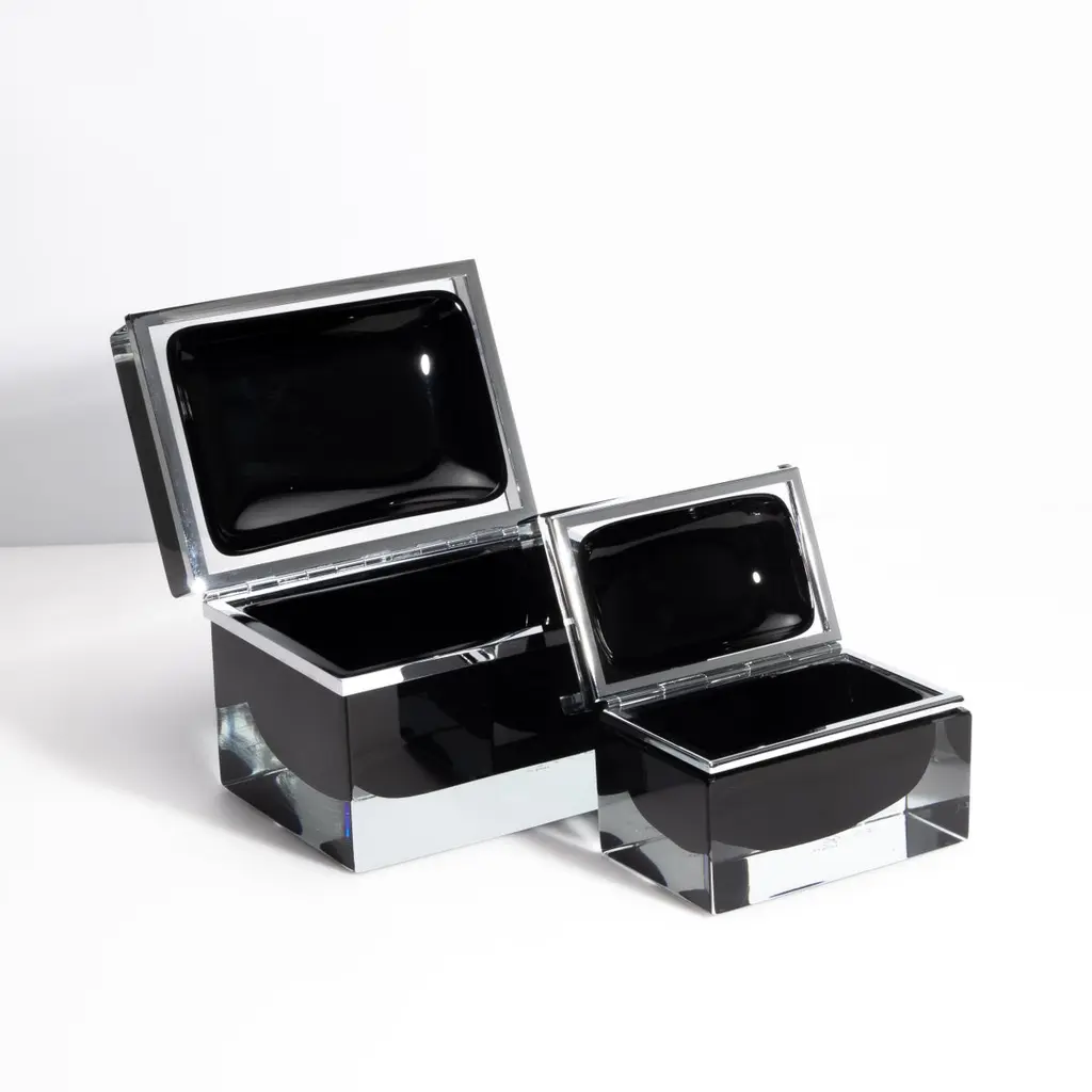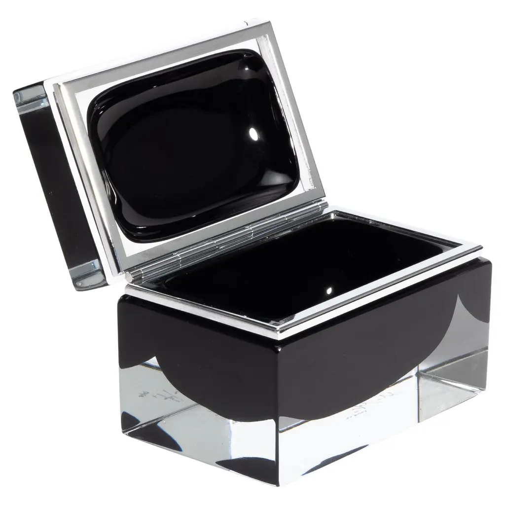Hand Blown Murano Glass Box In Onyx Black With Chrome Fittings
